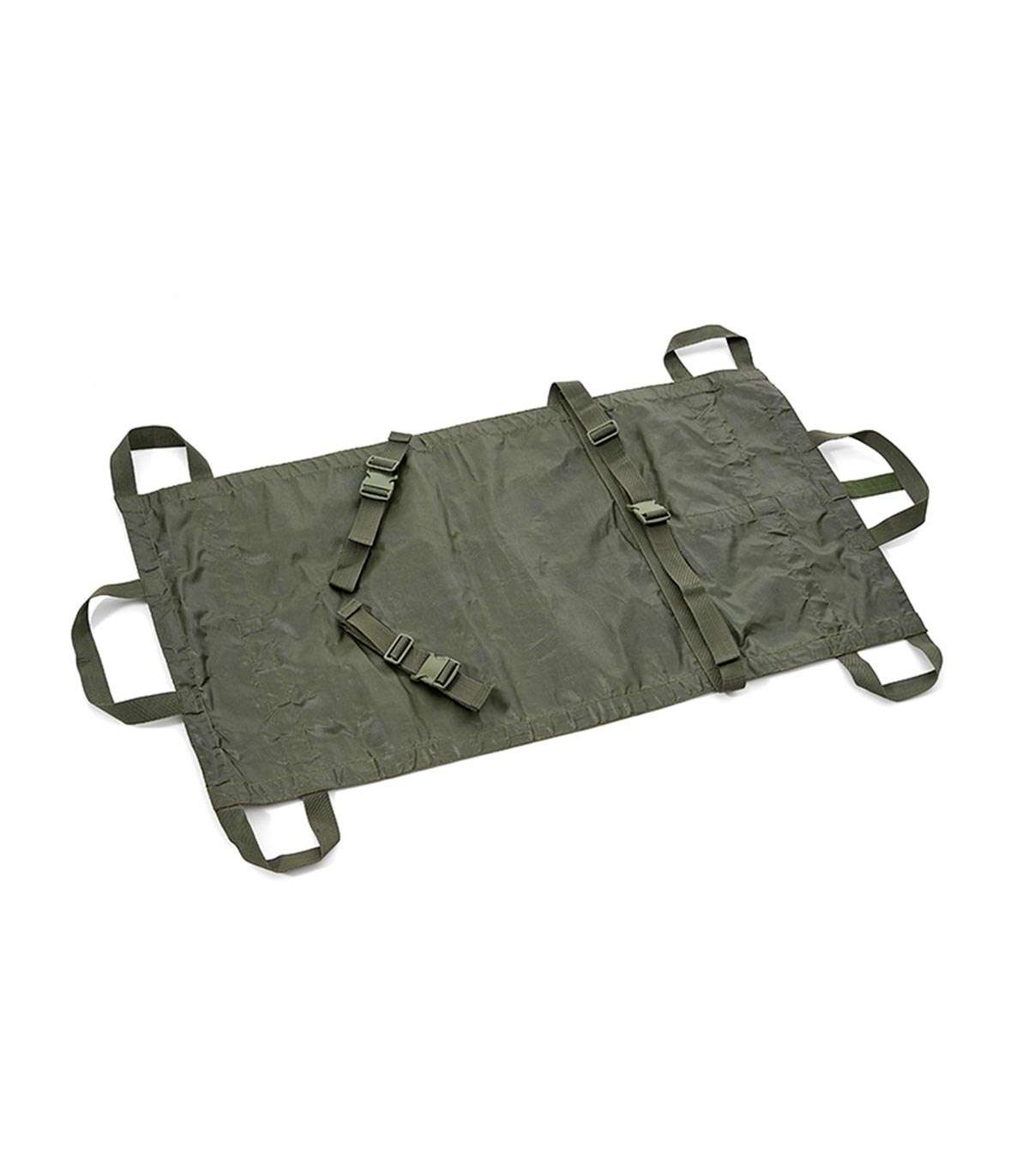 Tactical portable litter for casualty carry in the battlefield. Included to SF squads gear. Small and lightweight, this litter has an adjustable waist strap, four side handles, and reinforced drag straps top and bottom to allow a person to be dragged. It rolls up into a small bundle with its own carry handle for easy storage and deployment.