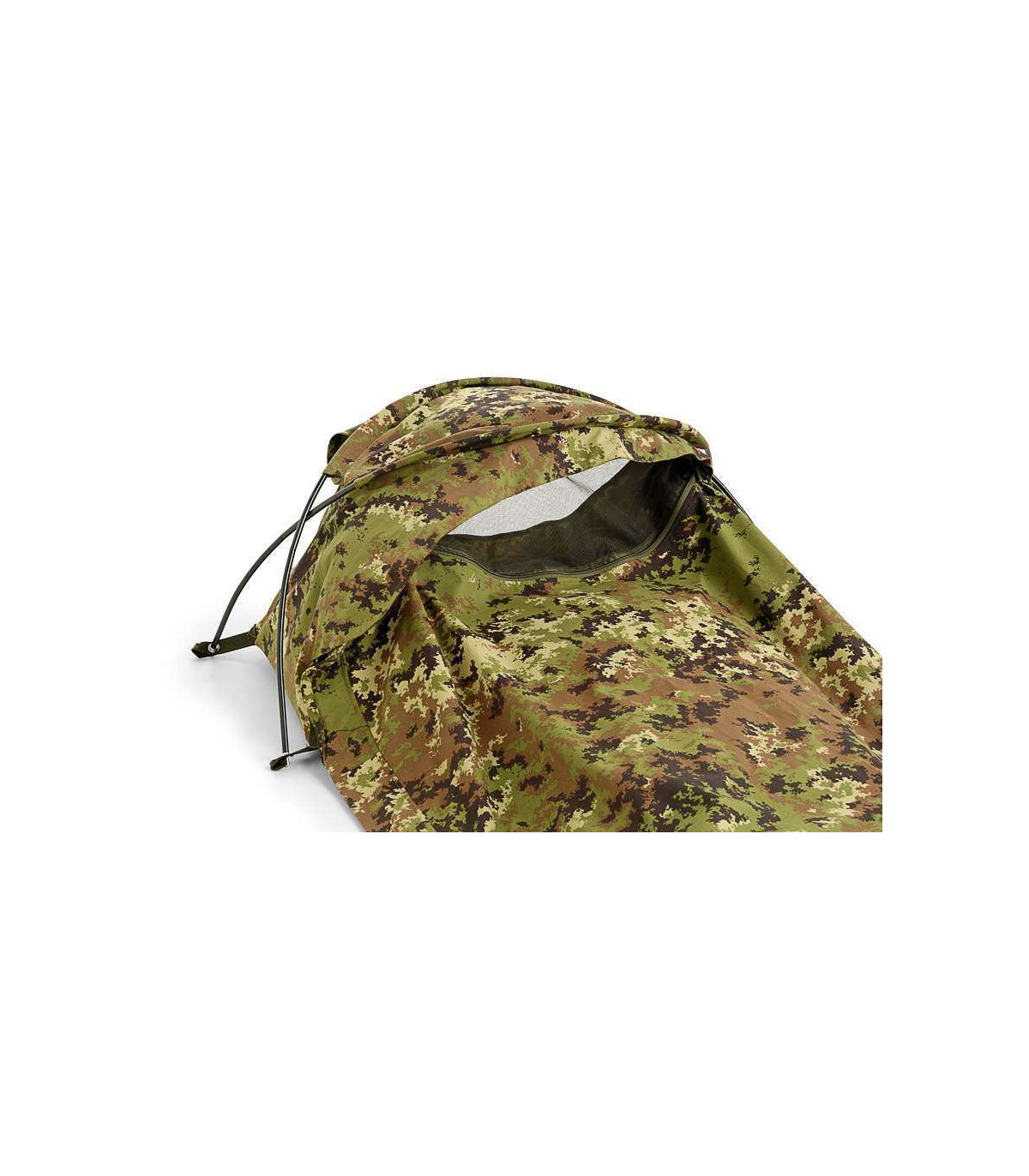 This ultra-compact shelter is designed to stand up to severe weather conditions and the waterproof breathable and abrasion resistant coating makes sure the operator stays dry. With the minimum weight of 1.6 kg and feauturing 8.5 mm aluminium tension resistant poles, this is the perfect tactical and hard use oriented bivi tent. It is waterproof with a water column of 5000 mm and also windproof so you can operate during bad weather conditions. Comes also with a mosquito net in the head area for maximum insect protection as well as maximum breathability. Ideal equipment with NSN/NUC, for SF personnel operating in OPs and tactical operations. Also suitable for one person outdoor expeditions.