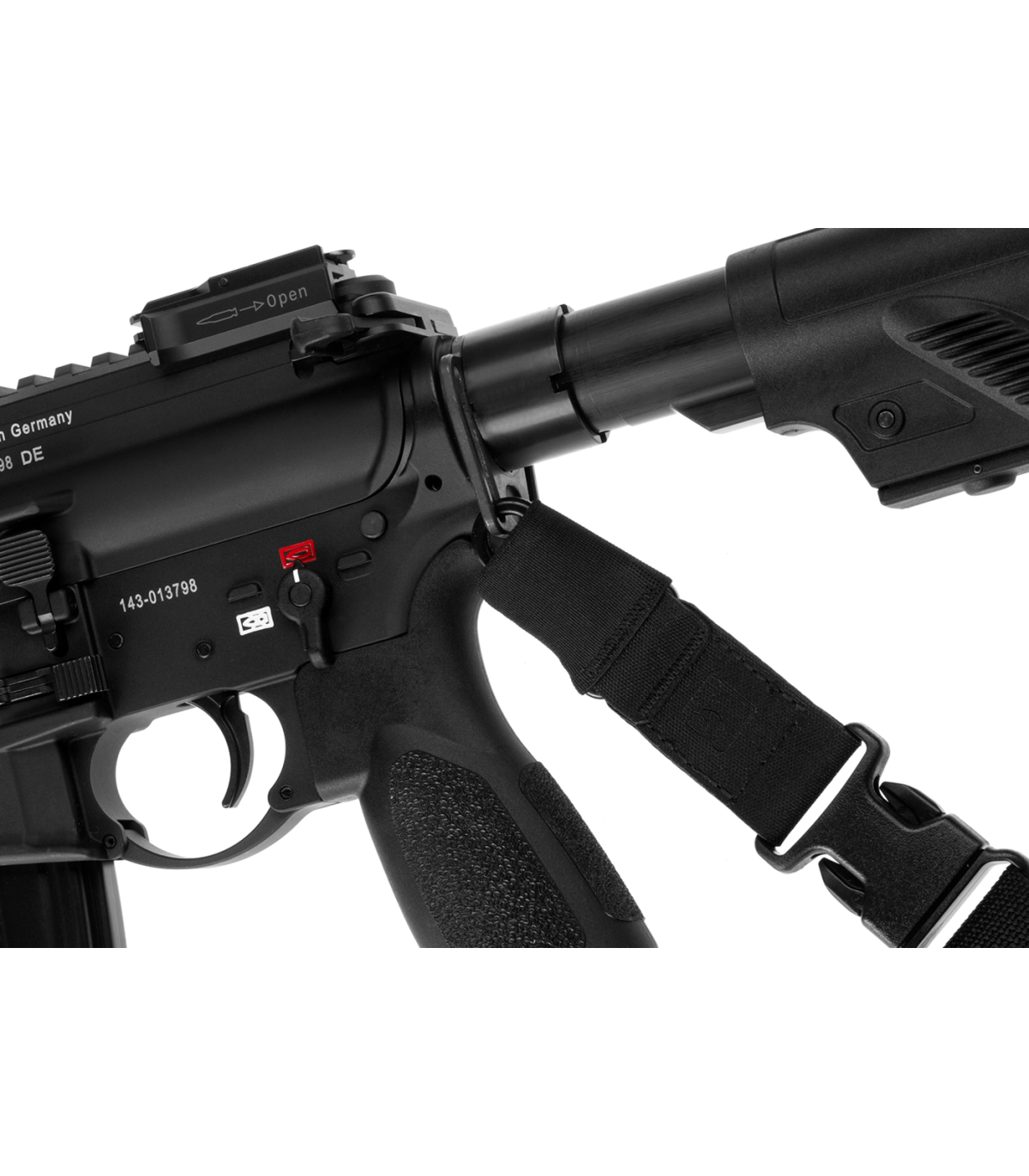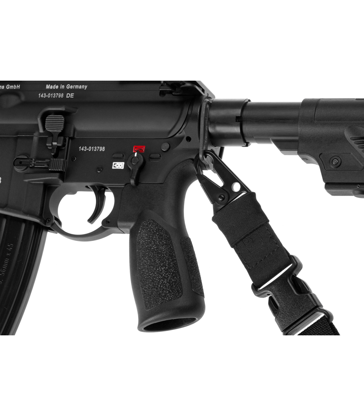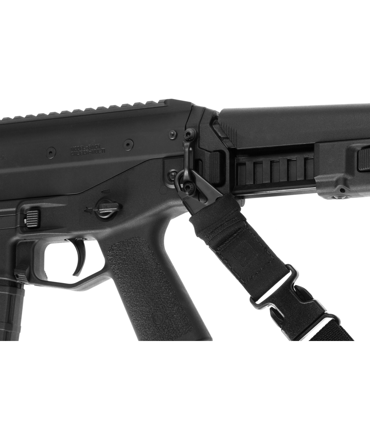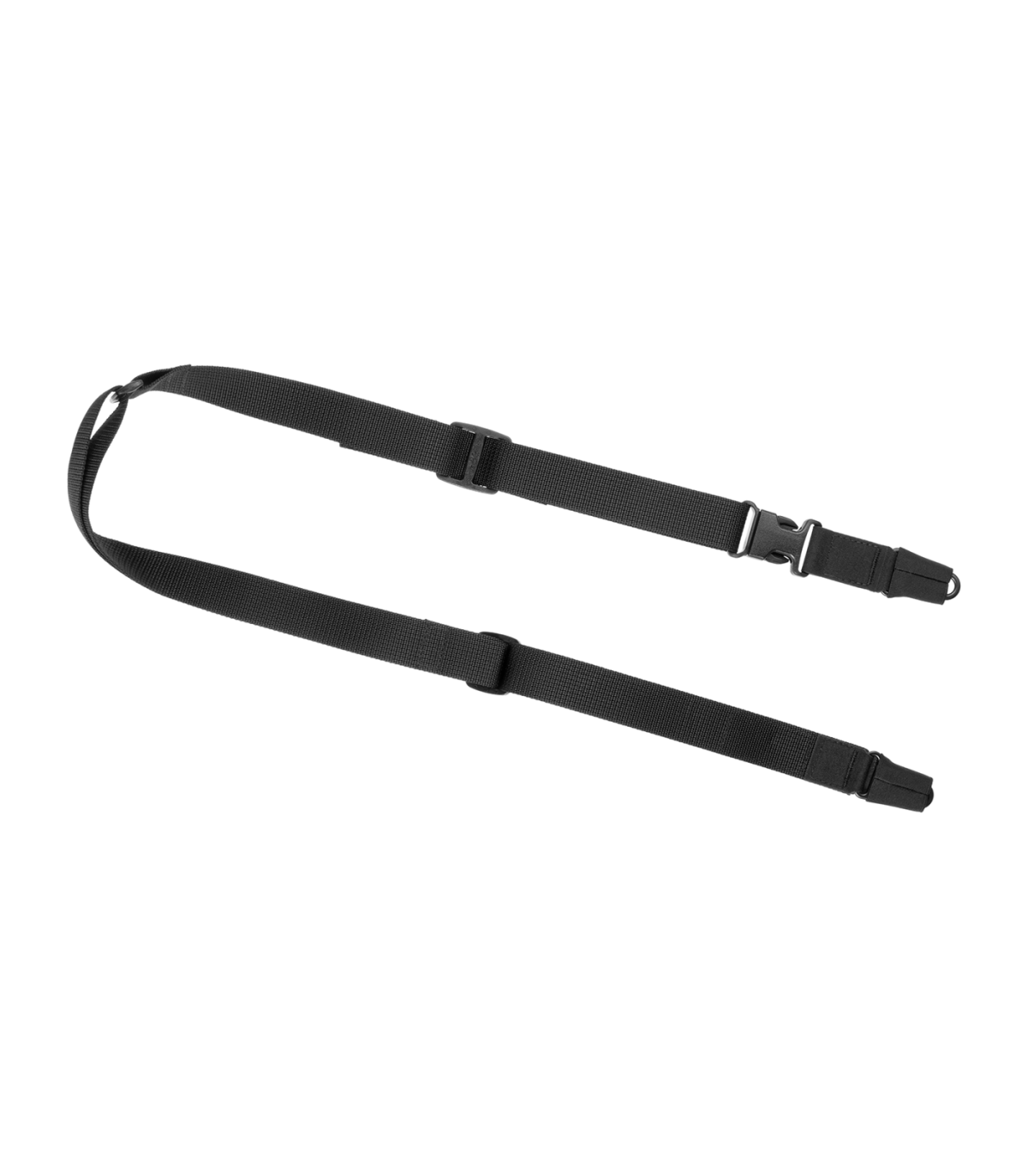 Extremely modular and versatile two point sling with a wide range of applications and options. Featuring SR buckle for fast release, 32mm wide Mil Spec webbing for great comfort and quick adjust pull tab for quick transition from carrying a slung rifle to combat readyness.