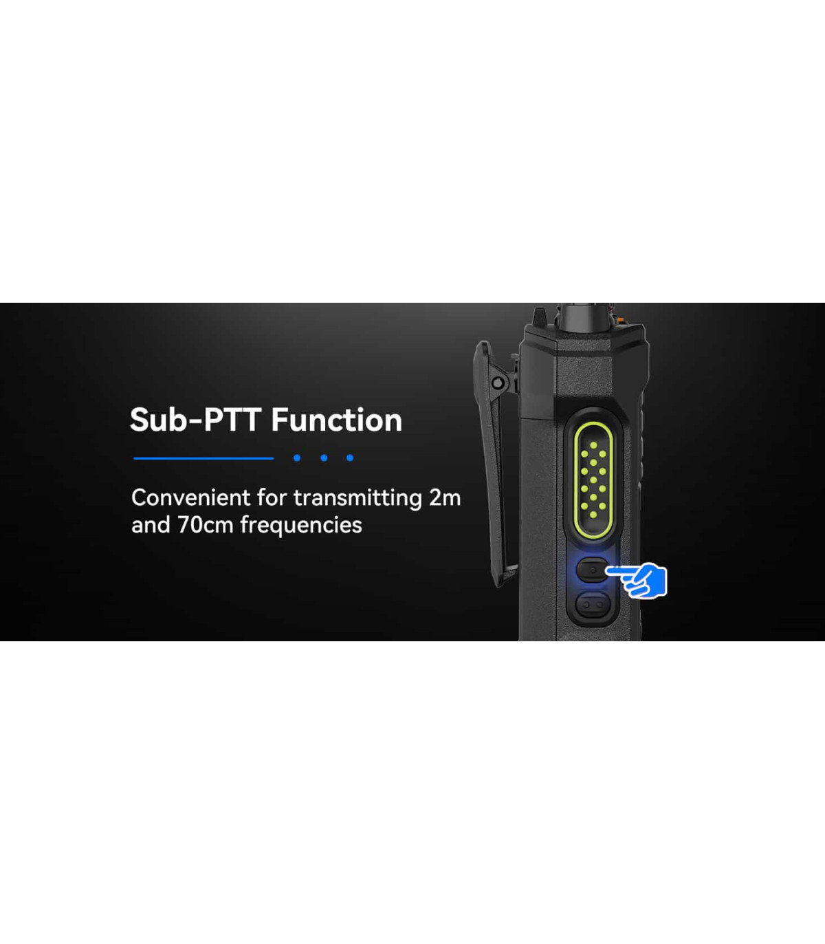 Είναι ανθεκτικός, απλός και εύκολος στη χρήση, με λειτουργία VFO, μπαταρία μεγάλης χωρητικότητας 2800mAh, έγχρωμη οθόνη 1,77 ιντσών και αποτελεί την καλύτερη επιλογή επικοινωνίας για υπαίθριες δραστηριότητες.