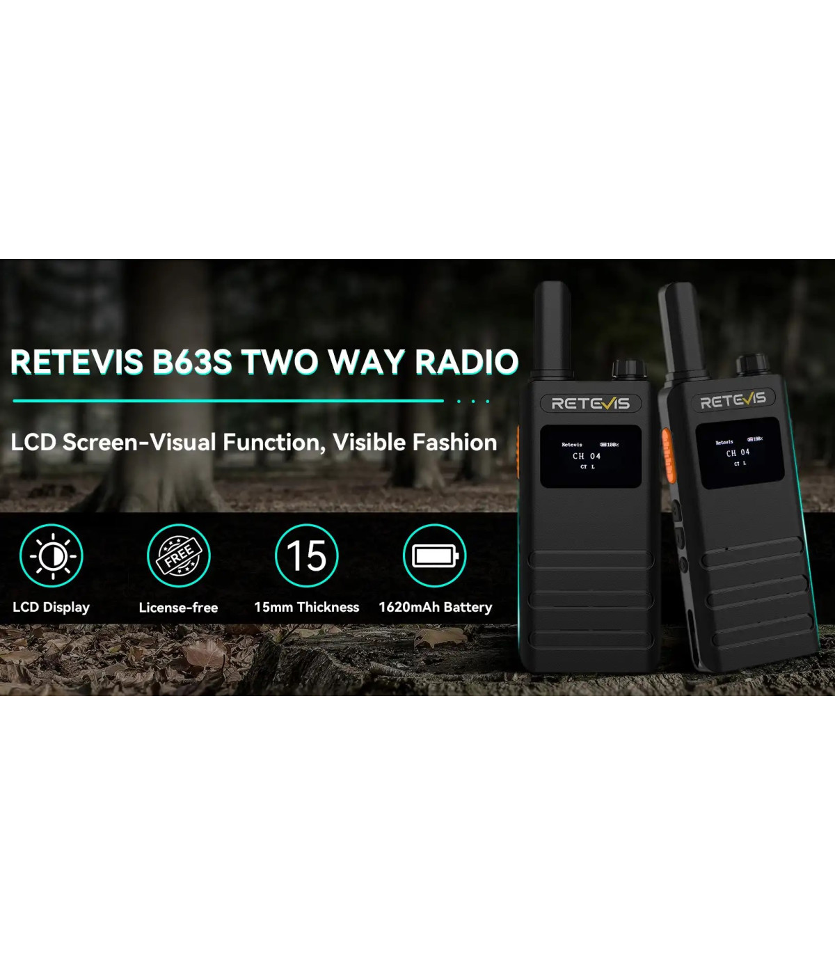 Ο φορητός αμφίδρομος ασύρματος πομποδέκτης Retevis B63S διαθέτει οθόνη LCD για να υποδεικνύει με σαφήνεια την κατάσταση λειτουργίας του ασύρματου, όπως το επίπεδο της μπαταρίας και τις πληροφορίες του καναλιού.