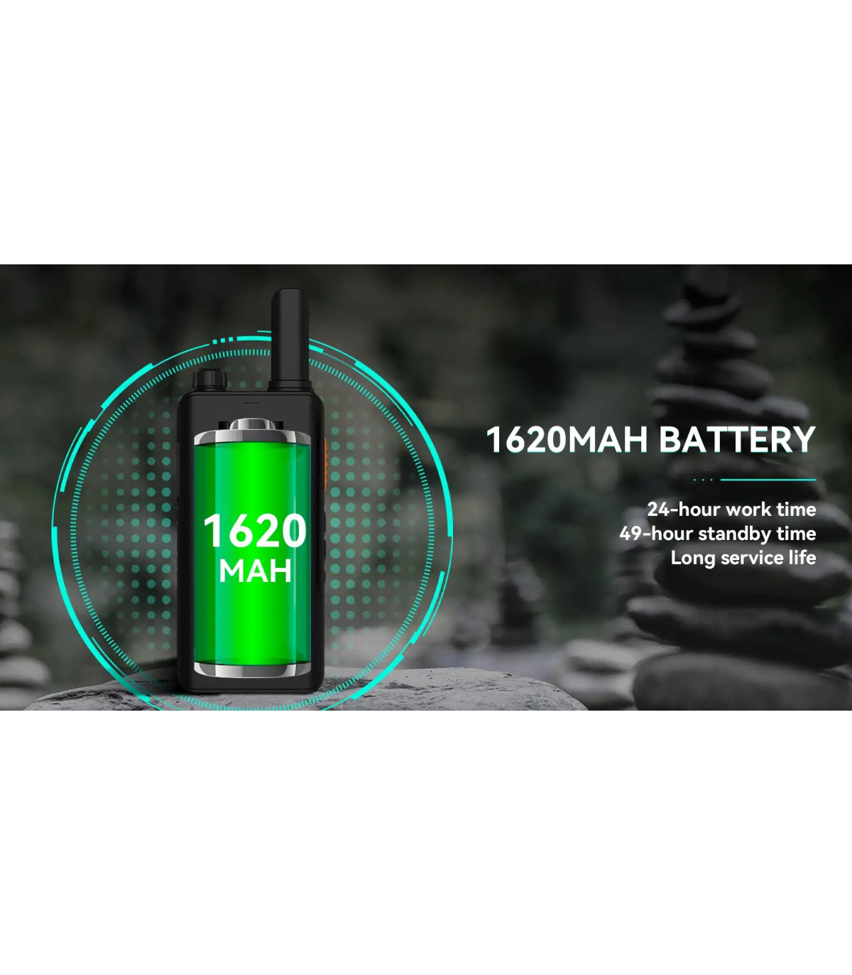 Με ενσωματωμένη μπαταρία 1620mAh, το επαναφορτιζόμενο walkie talkie B63S μπορεί να χρησιμοποιηθεί συνεχώς για 24 ώρες, καλύπτοντας αποτελεσματικά την ολοήμερη χρήση χωρίς συχνή φόρτιση.