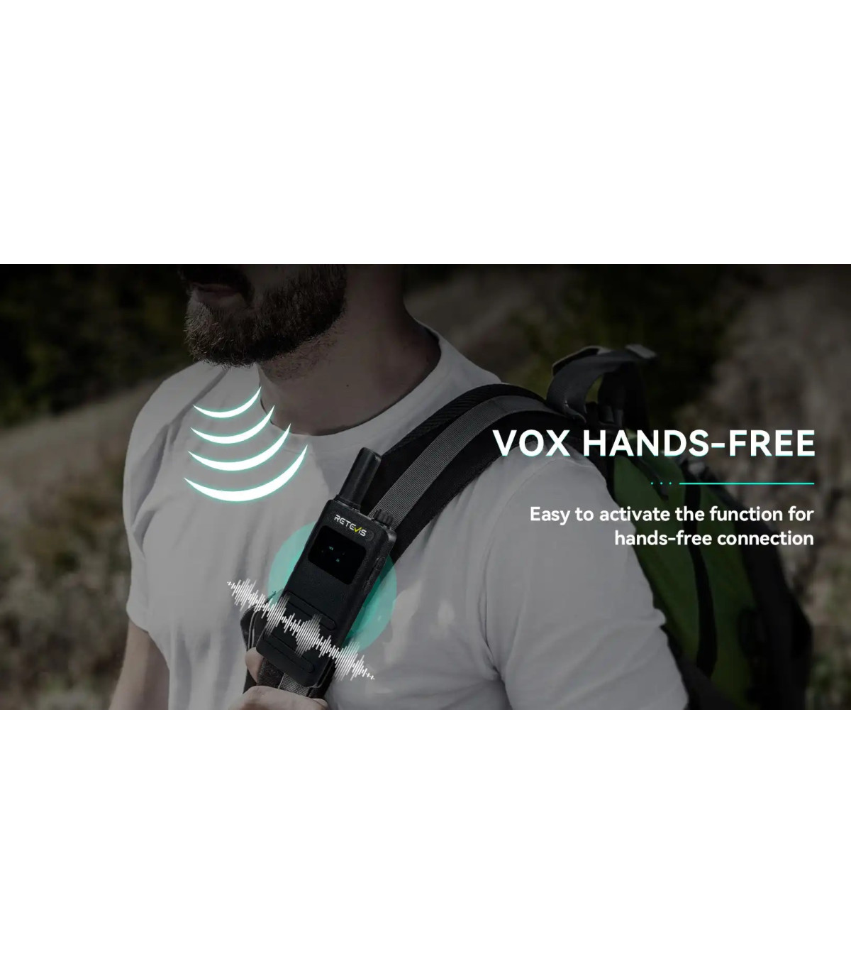 Μετά την ενεργοποίηση της λειτουργίας VOX του φορητού walkie talkie B63S, η μετάδοση μπορεί να επιτευχθεί χωρίς κόπο χωρίς να χρειάζεται να πατήσετε το κουμπί PTT για επικοινωνία.