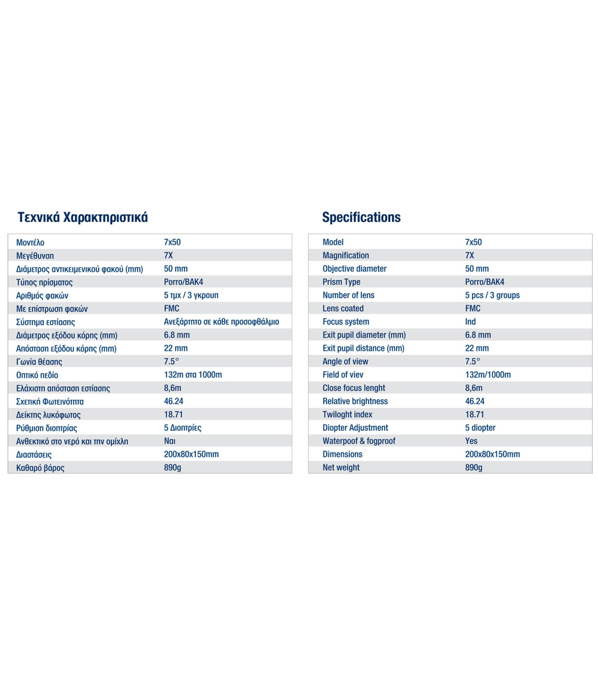 ΚΙΑΛΙΑ FALX Optics Aegean 7x50mm, Marine, BLUE