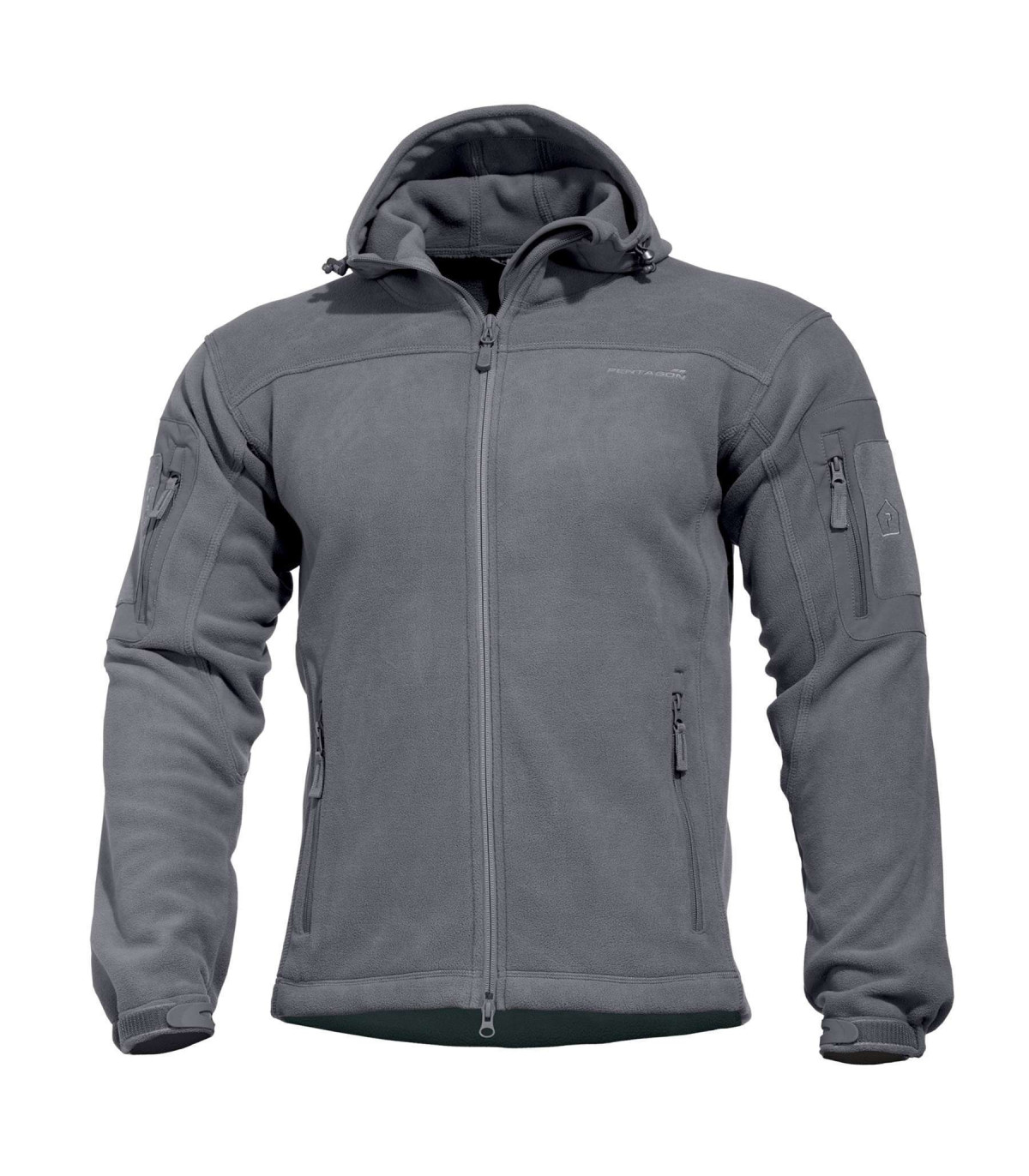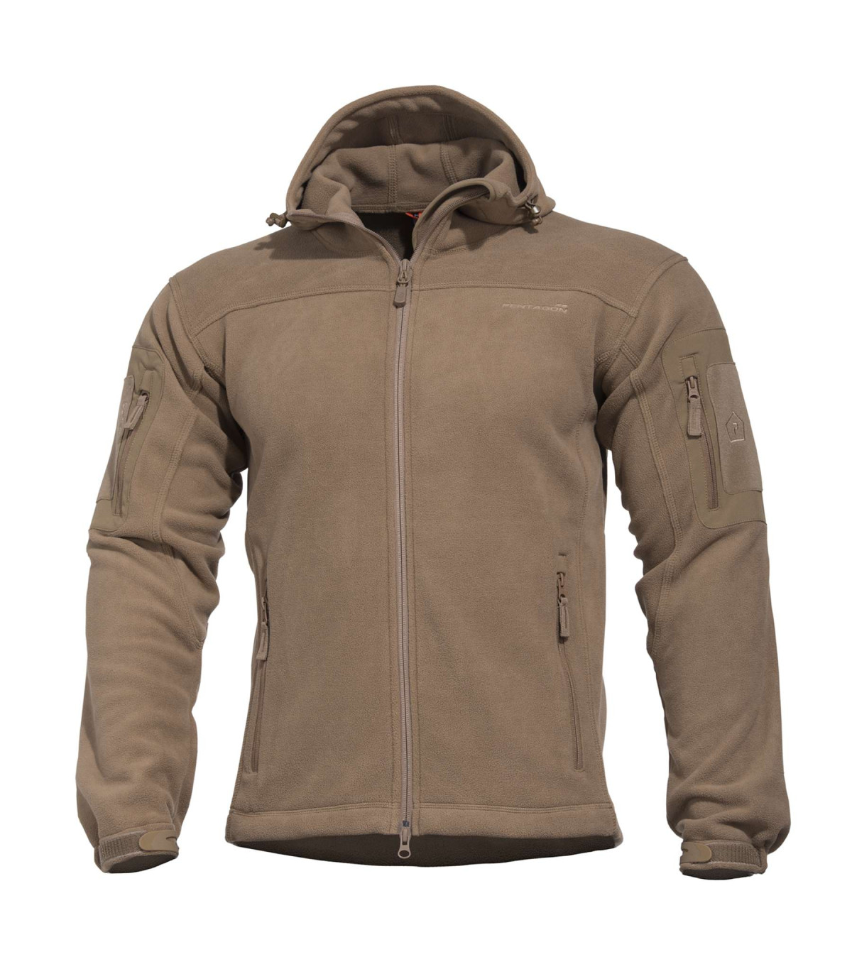 This is a multi-functional fleece jacket with a tactical orientation, is made from double backed 300Gsm. super fine fleece. Convenient large hand pockets for utilities and documents, extra pockets on the inside, soft-shell patched arm pockets with velvet hook loop patches, re-enforced soft-shell elbow patches.