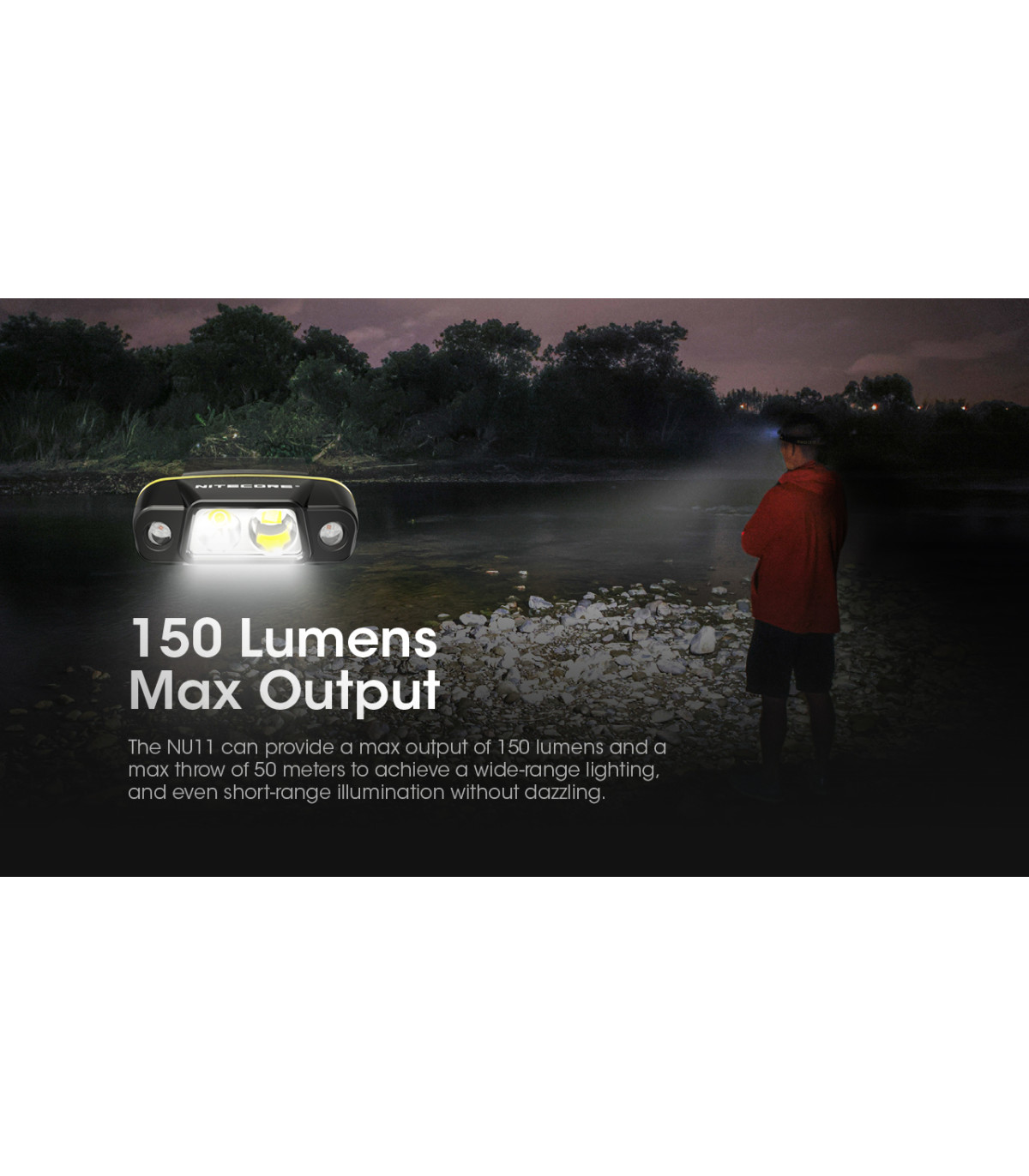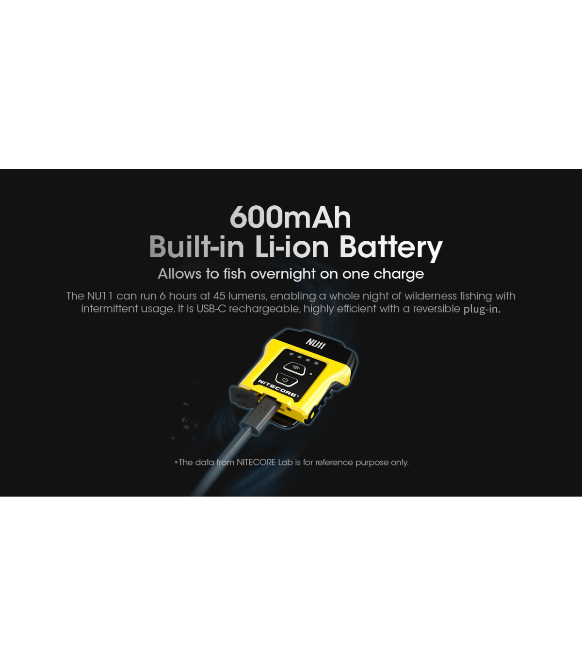 Ο φακός NITECORE NU11 μπορεί να λειτουργήσει 6 ώρες και 45 λεπτά , επιτρέποντας την λειτουργία όλη την νύχτα με διακοπτόμενη λειτουργία.