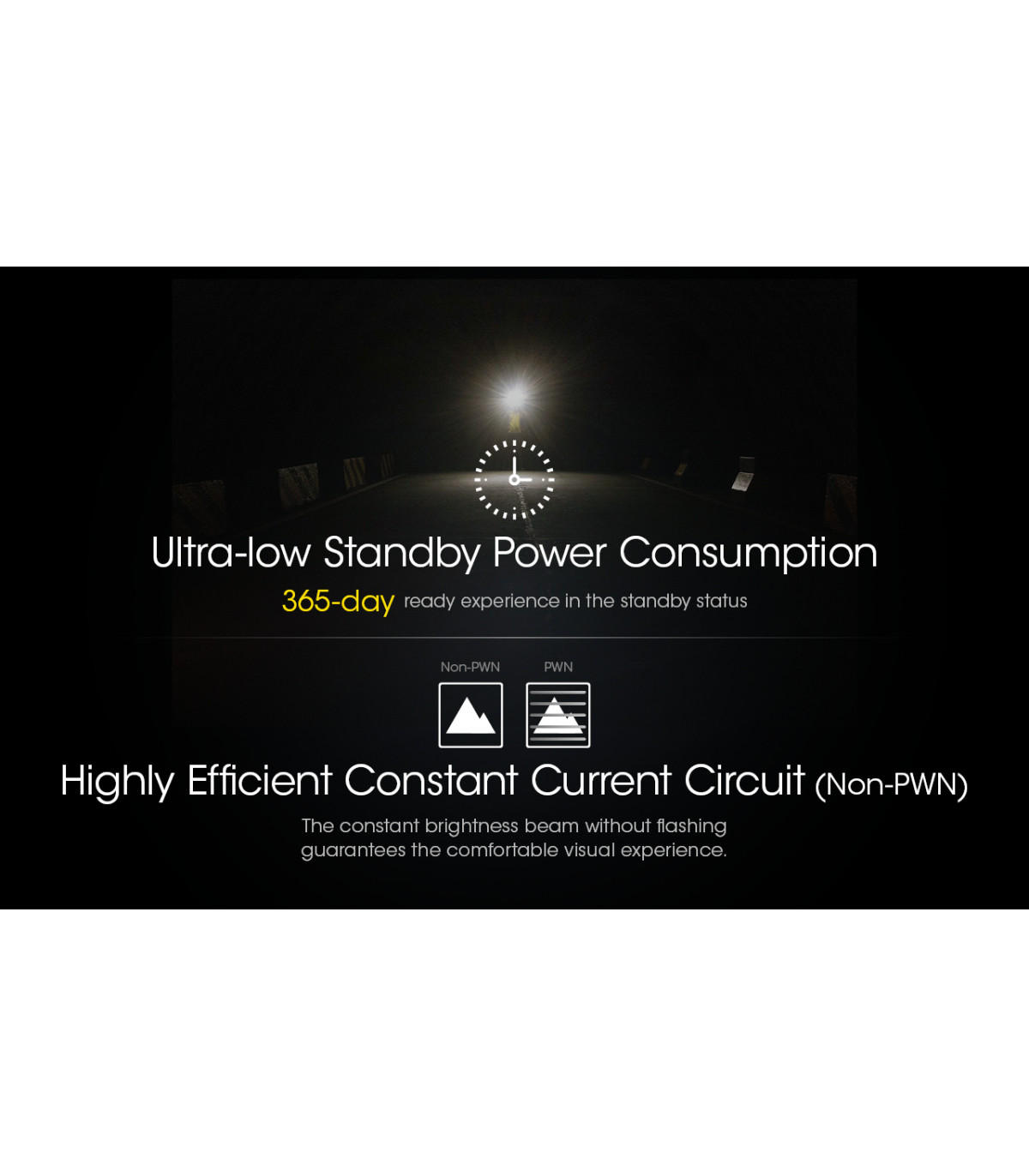 – Υψηλής απόδοσης κύκλωμα σταθερού ρεύματος παρέχει σταθερό φωτισμό με μέγιστη διάρκεια τις 45 ώρες.
