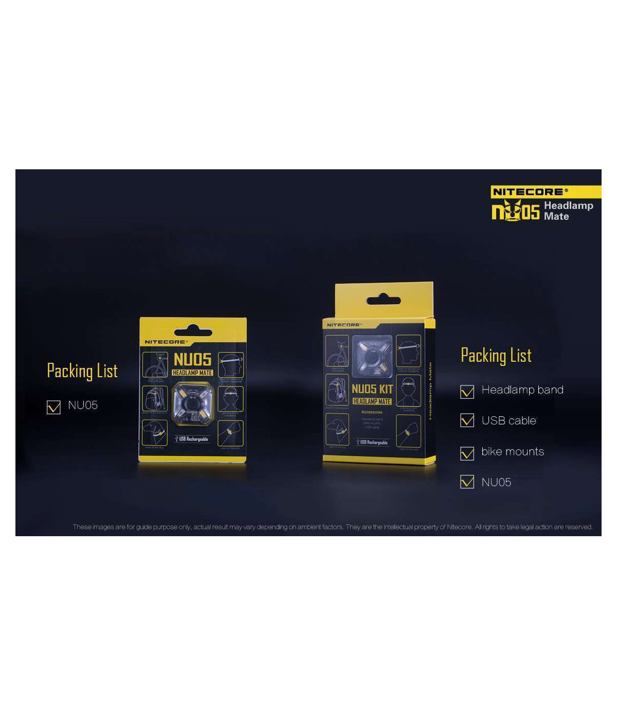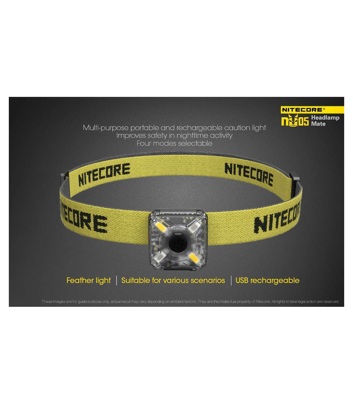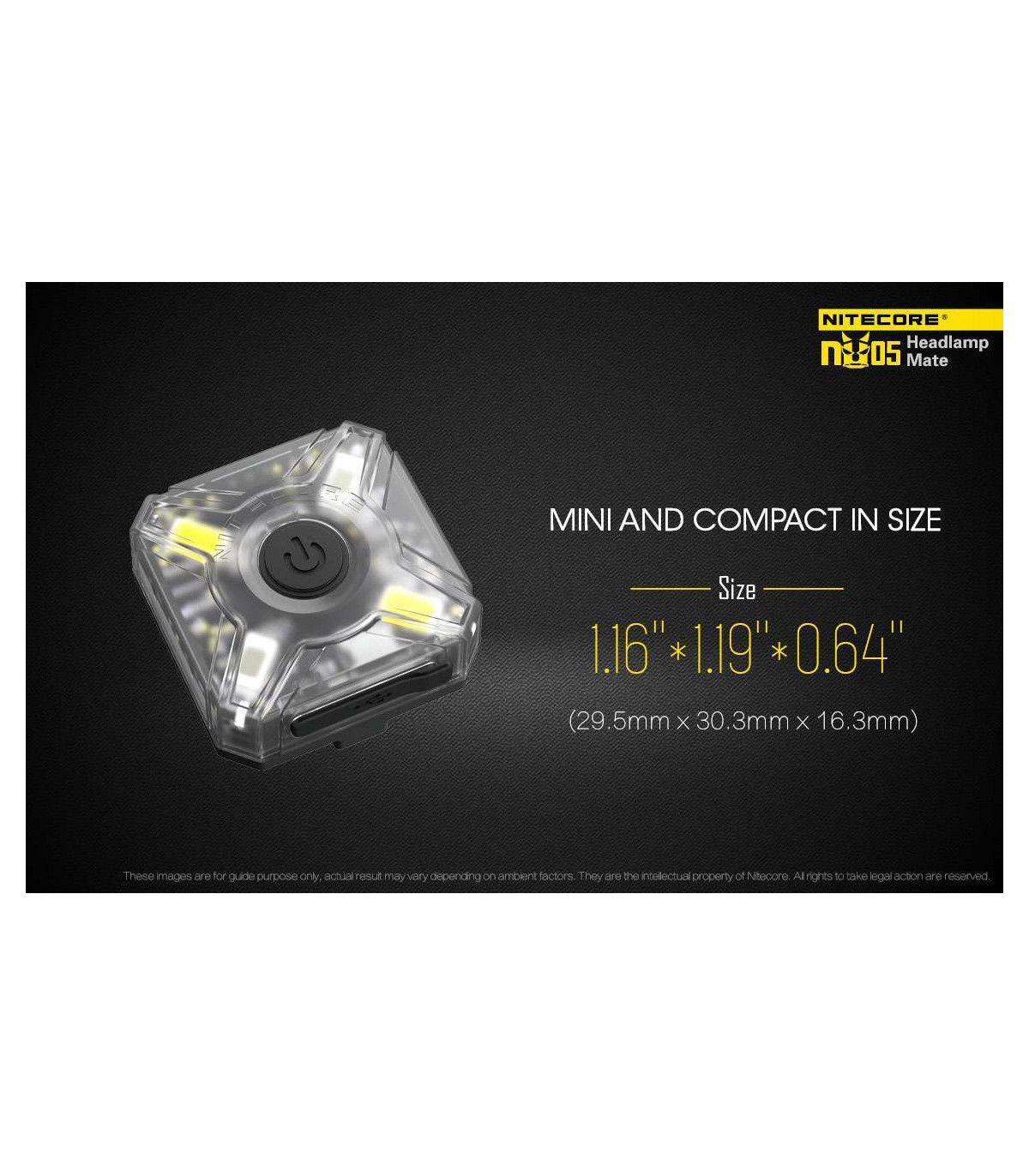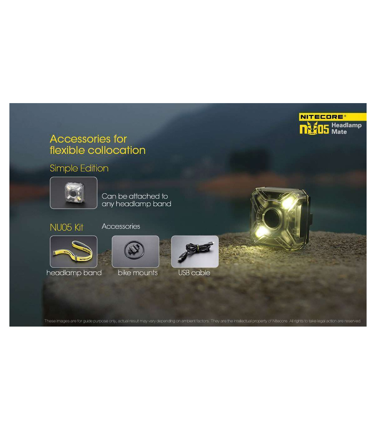 Stay safe at night with the Nitecore NU05 headlamp mate! This safety and emergency light features 2x red and 2x white LEDs making it a perfect match for bicycling, walking, running, pets, children, backpacking and more. Using the single button interface, users can select from five different outputs including: