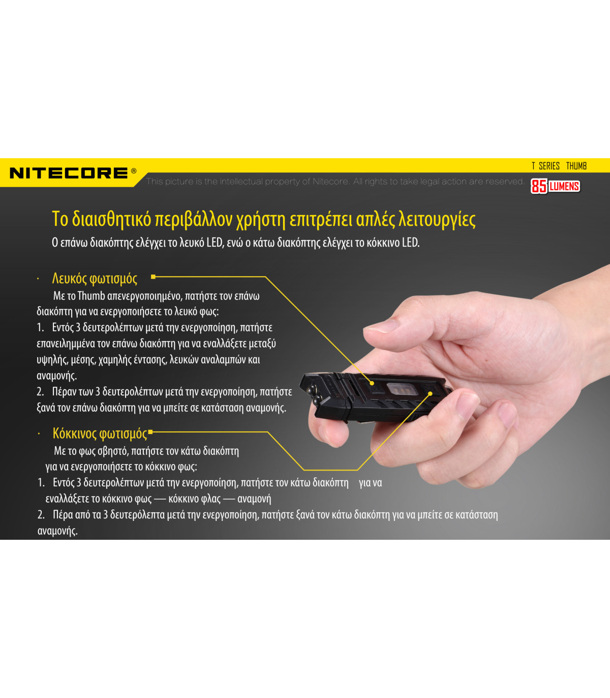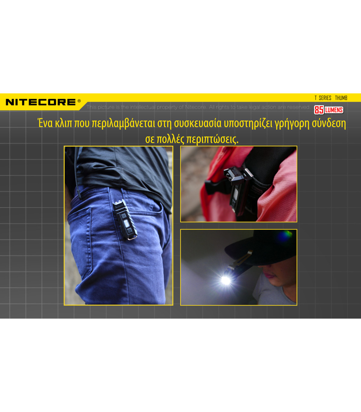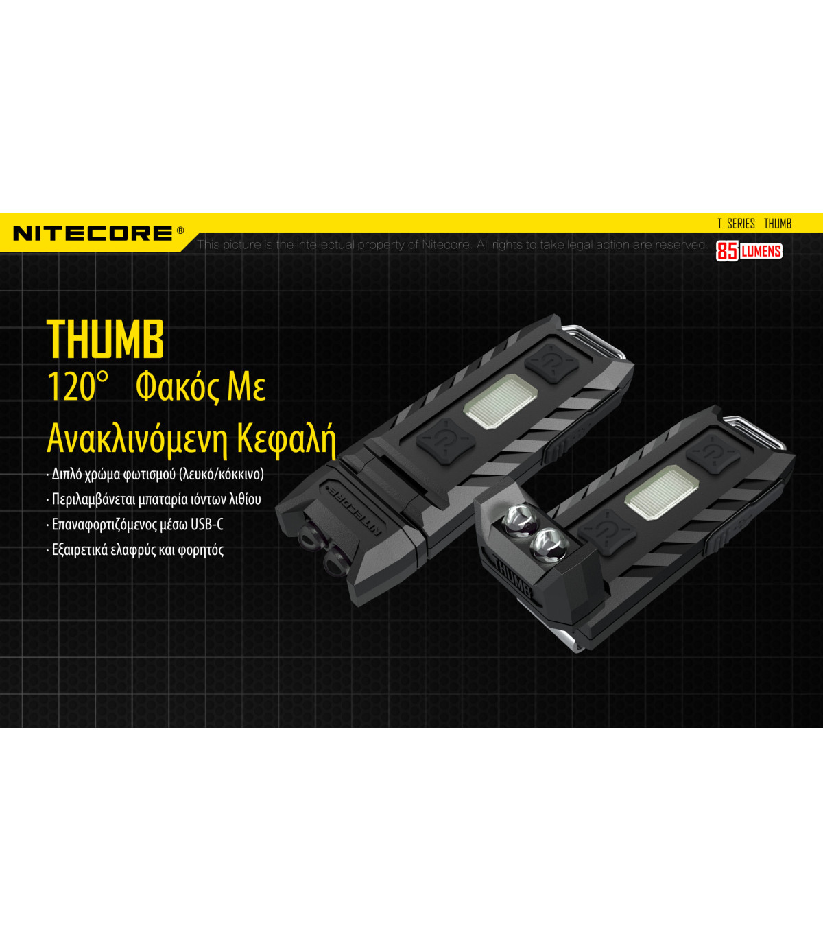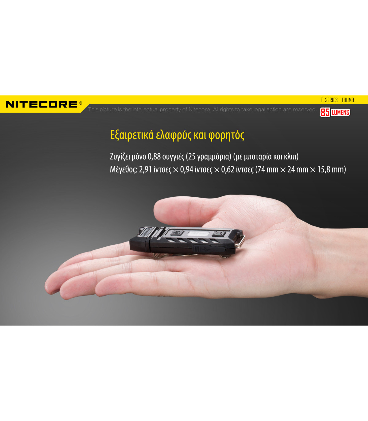 ΦΑΚΟΣ LED NITECORE THUMB USB-C s/n, rechargable, 85lumens