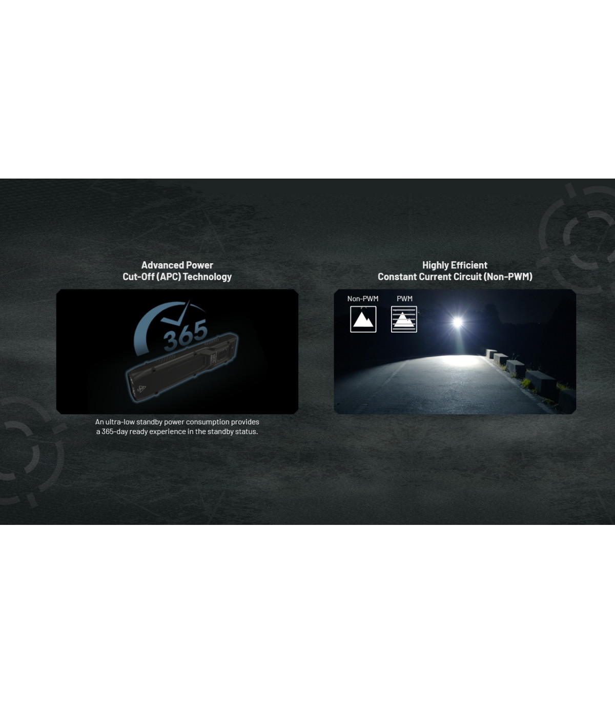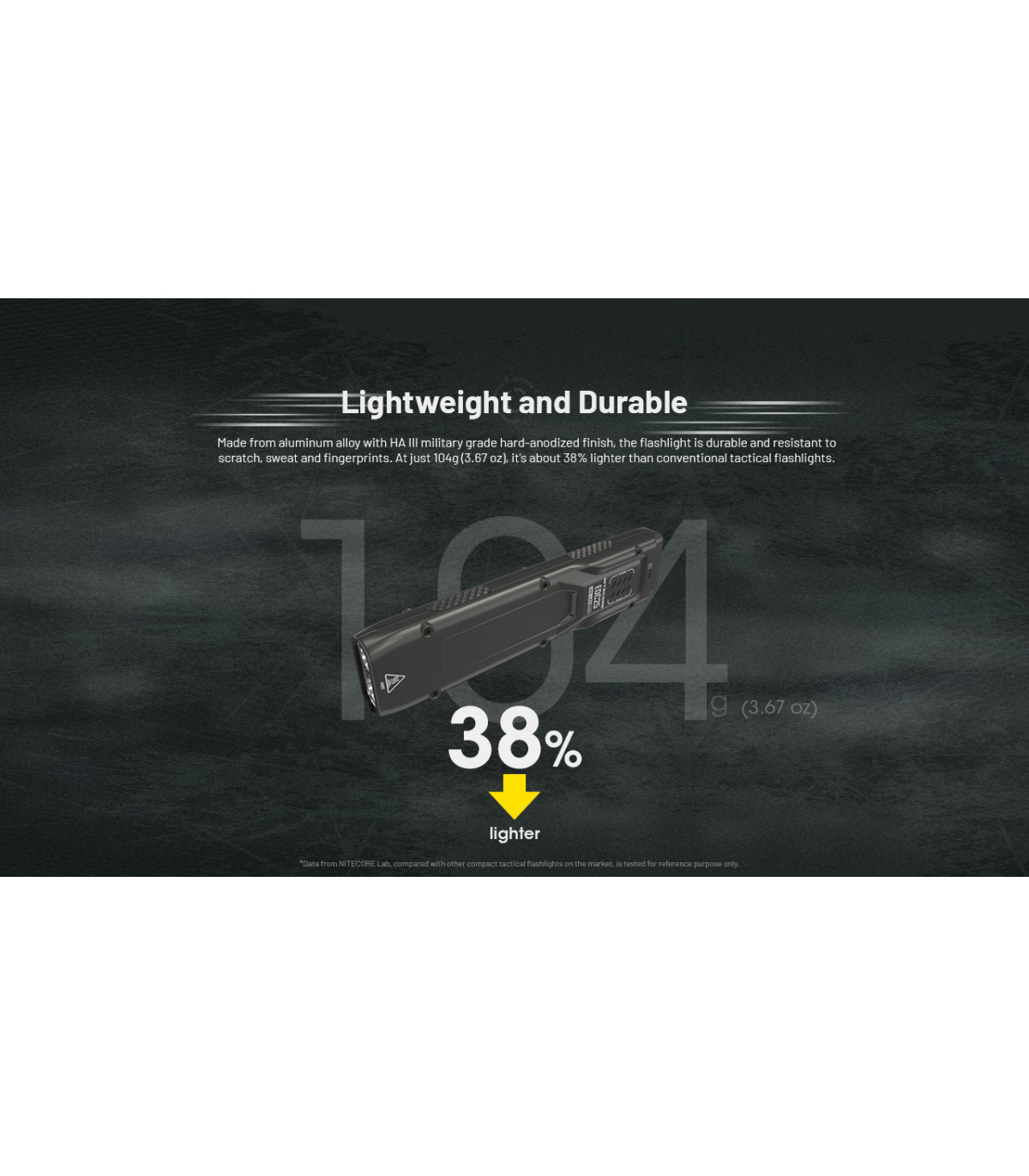 * Τα δεδομένα προέρχονται από το εργαστήριο της NITECORE  σε σύγκριση με άλλους επιχειρησιακούς φακούς της αγοράς , η δοκιμή έγινε μόνο για λόγους αναφοράς.