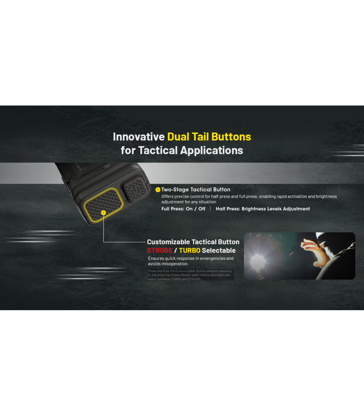 – Ρυθμιζόμενη από τον χρήση η άμεση πρόσβαση στον φωτισμό TURBO ή στον STROBE READY™