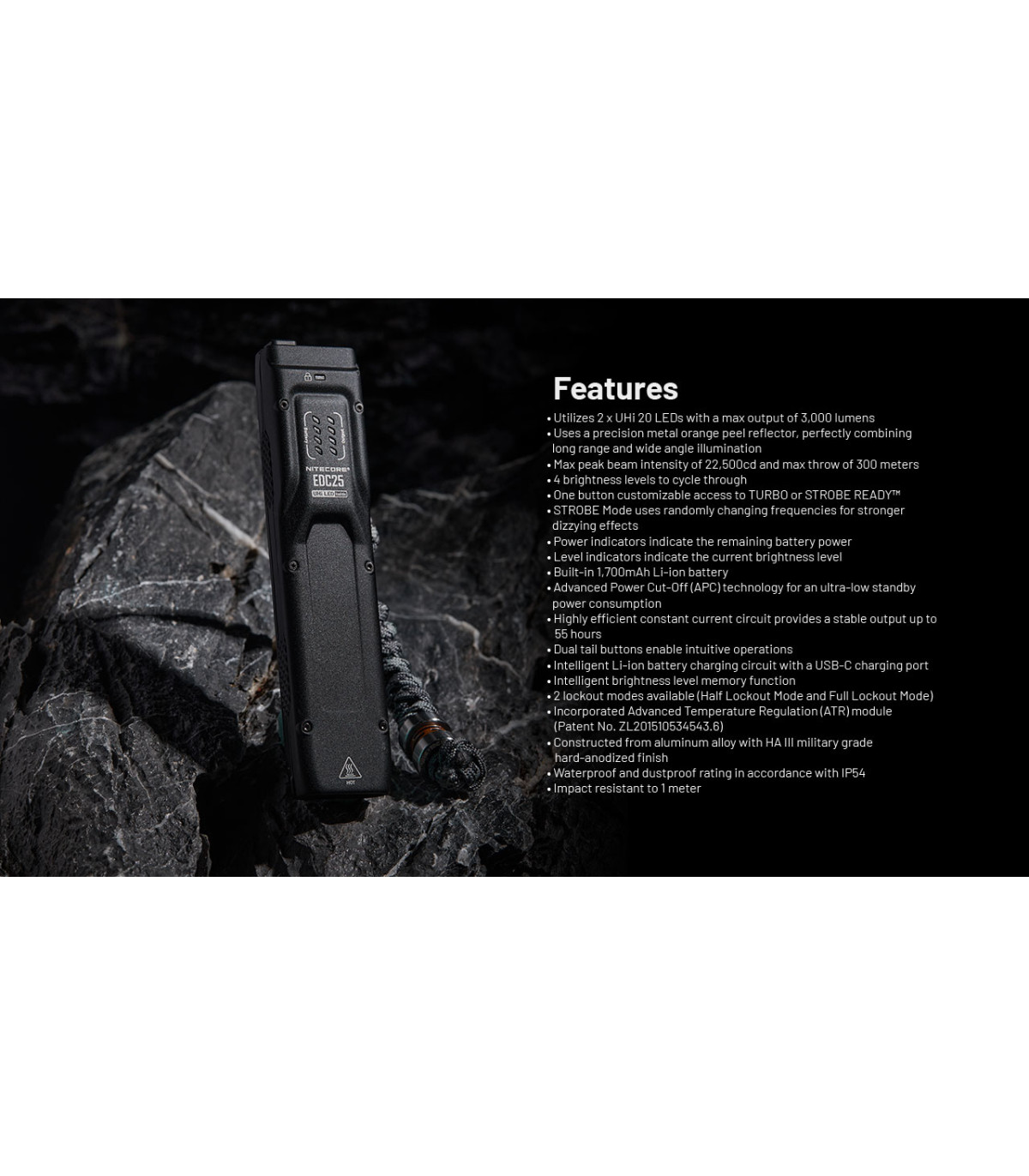 ΦΑΚΟΣ LED NITECORE EDC25, 3000Lumens