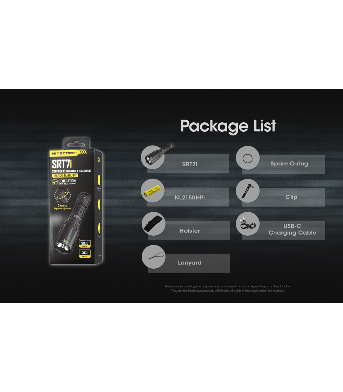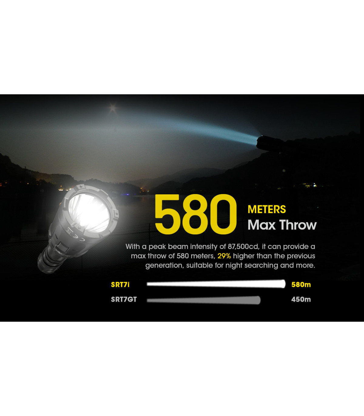 Χρησιμοποιώντας ένα LED Luminus SFT-70 και ένα οπτικό σύστημα σε συνδυασμό με κρυστάλλινη επίστρωση και την “Τεχνολογία Ψηφιακής Οπτικής Ακριβείας” (PDOT), ο SRT7i έχει μέγιστη απόδοση 3.000 lumens, περίπου 200% υψηλότερη από την προηγούμενη γενιά, ιδανική για τακτικές εφαρμογές, αναζήτηση, περιπολίες και αυτοάμυνα.