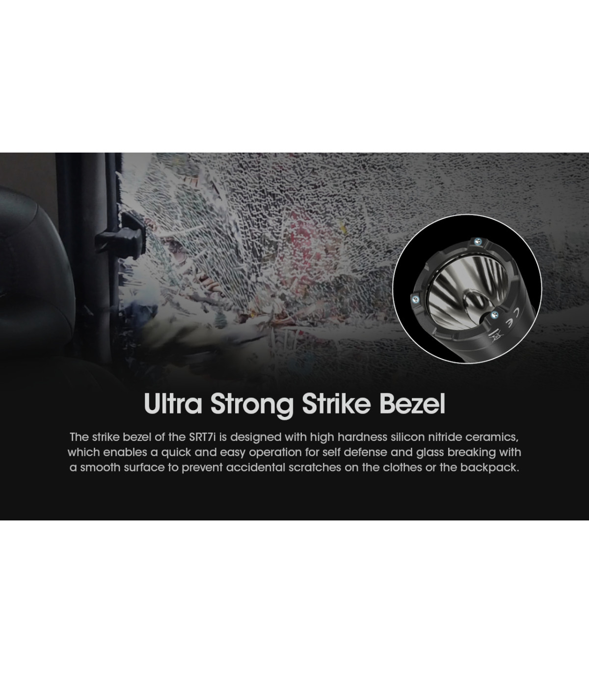 Η στεφάνη του SRT7i έχει σχεδιαστεί με κεραμικά νιτριδίου του πυριτίου υψηλής σκληρότητας, το οποίο επιτρέπει μια γρήγορη και εύκολη λειτουργία για αυτοάμυνα και θραύση κρυστάλλων με λεία επιφάνεια για την αποφυγή τυχαίων γρατζουνιών στα ρούχα ή το σακίδιο.