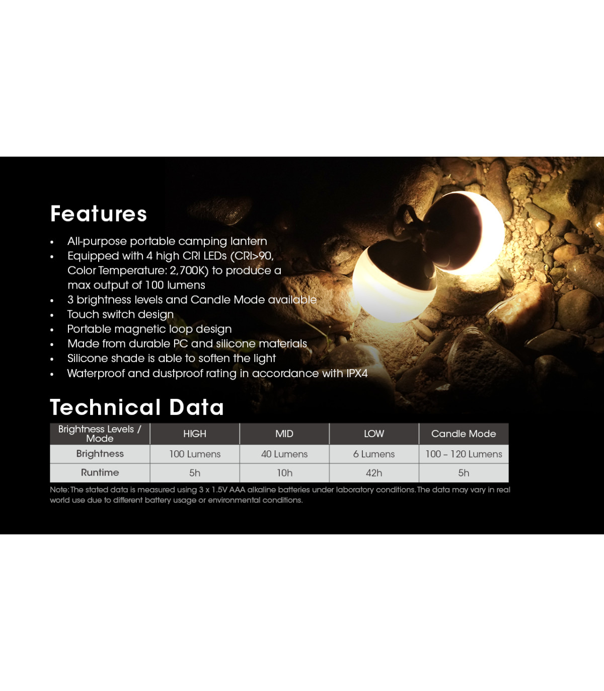 – Εξοπλισμένο με 4 LED υψηλού CRI (CRI>90, θερμοκρασία χρώματος) , για να παράγουν μέγιστη απόδοση 100 lumens