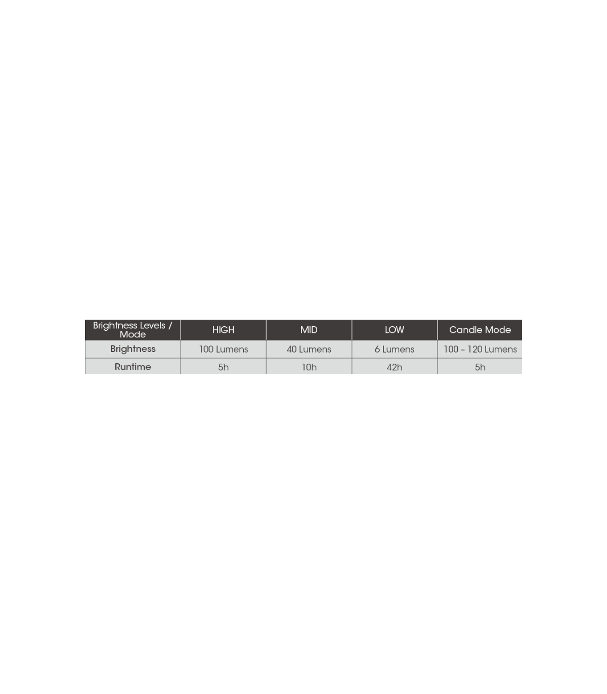 – Διαθέτει τρία (3) επίπεδα φωτεινότητας και λειτουργία κεριού