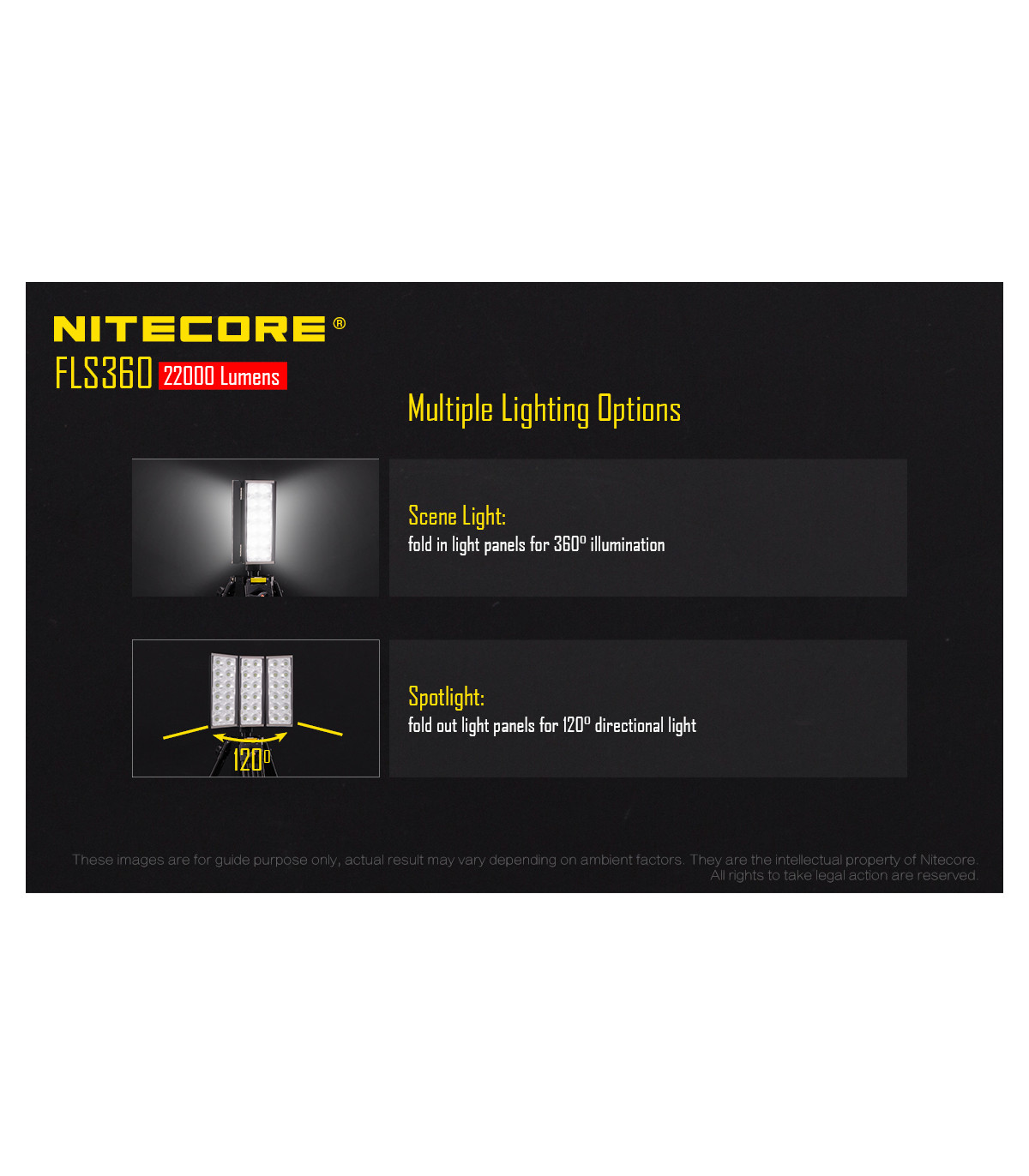 – Φωτισμός σκηνικού: Τα πάνελ ξεδιπλώνονται και τοποθετούνται ως τρίγωνο για να φωτίσουν έναν χώρο σε γωνία 360° (κυκλικά)