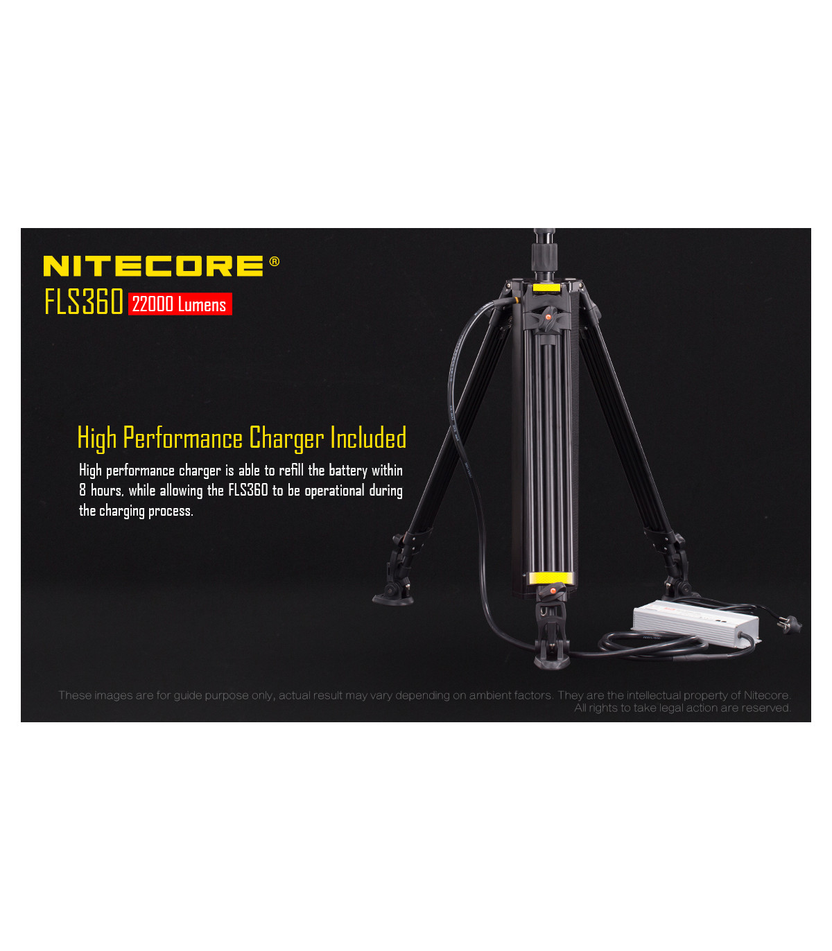 Ο φορτιστής υψηλής απόδοσης είναι ικανός να φορτίσει την ενσωματωμένη μπαταρία μέσα σε 8 ώρες, ενώ επιτρέπει στο FLS360 να είναι λειτουργικό κατά την διάρκεια της φόρτισης.