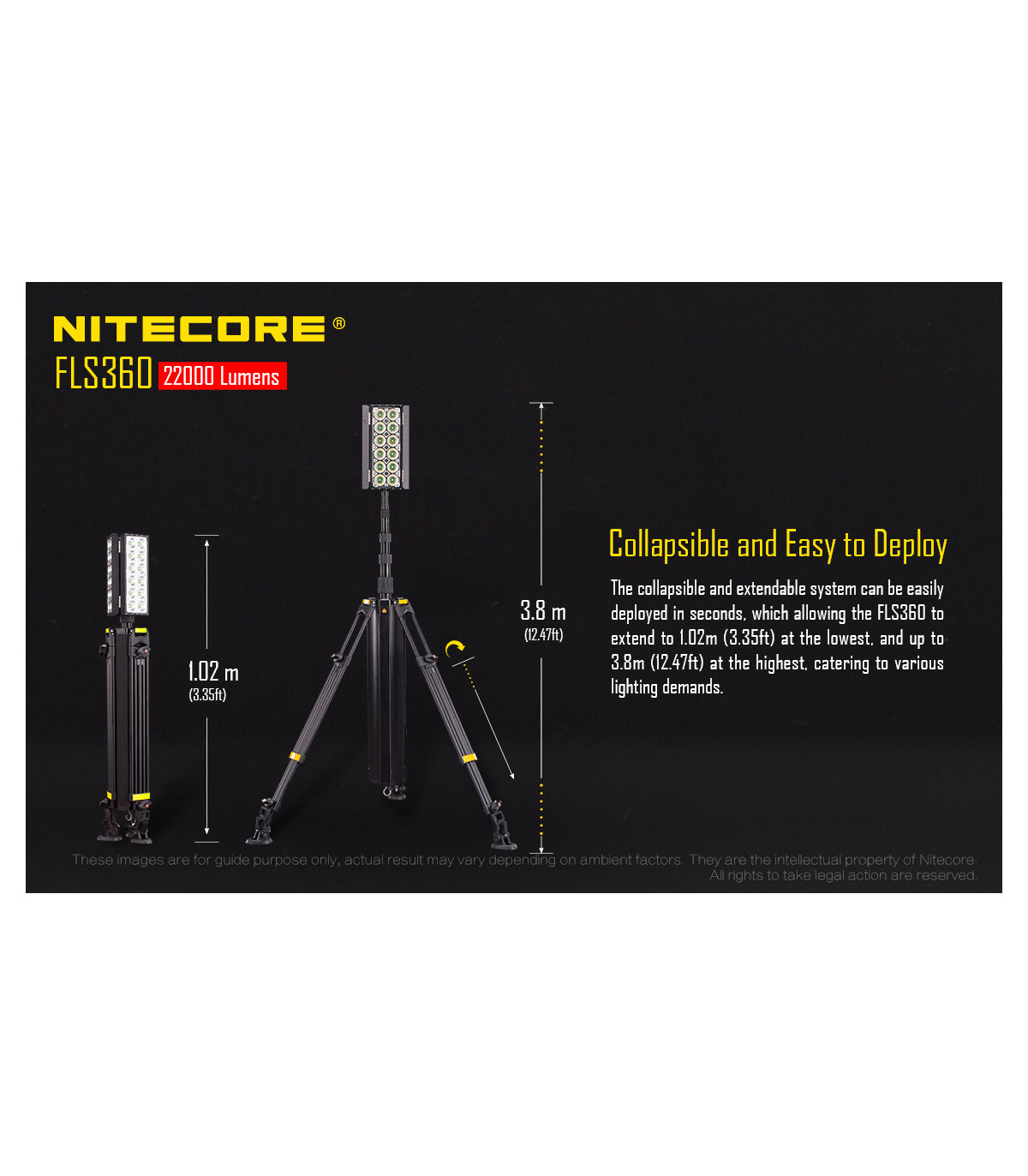 Επιτρέπει στο FLS360 να εκτείνεται από 1,02m το ελάχιστο έως 3,8m το μέγιστο έτσι ώστε να μπορεί να καλύψει διαφορετικές απαιτήσεις.
