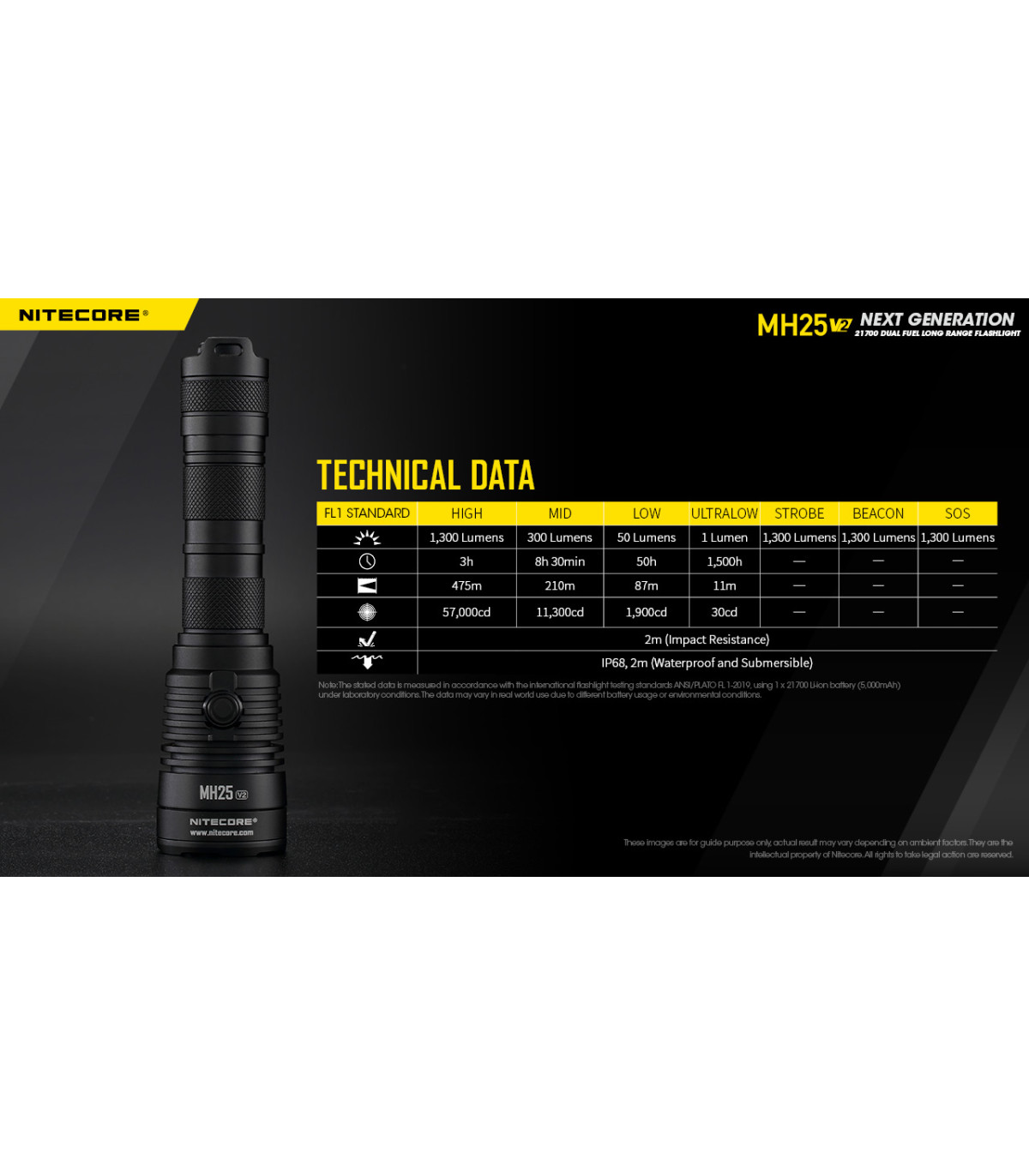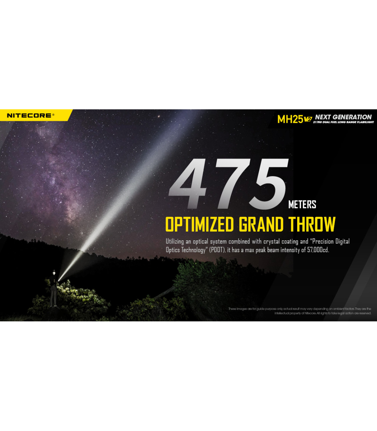 01. O MH25 V2 ανήκει στην Νέα Γενιά υβριδικών φακών μεγάλης απόστασης που λειτουργεί τόσο με μπαταρίες 21700 όσο και με τις 18650
