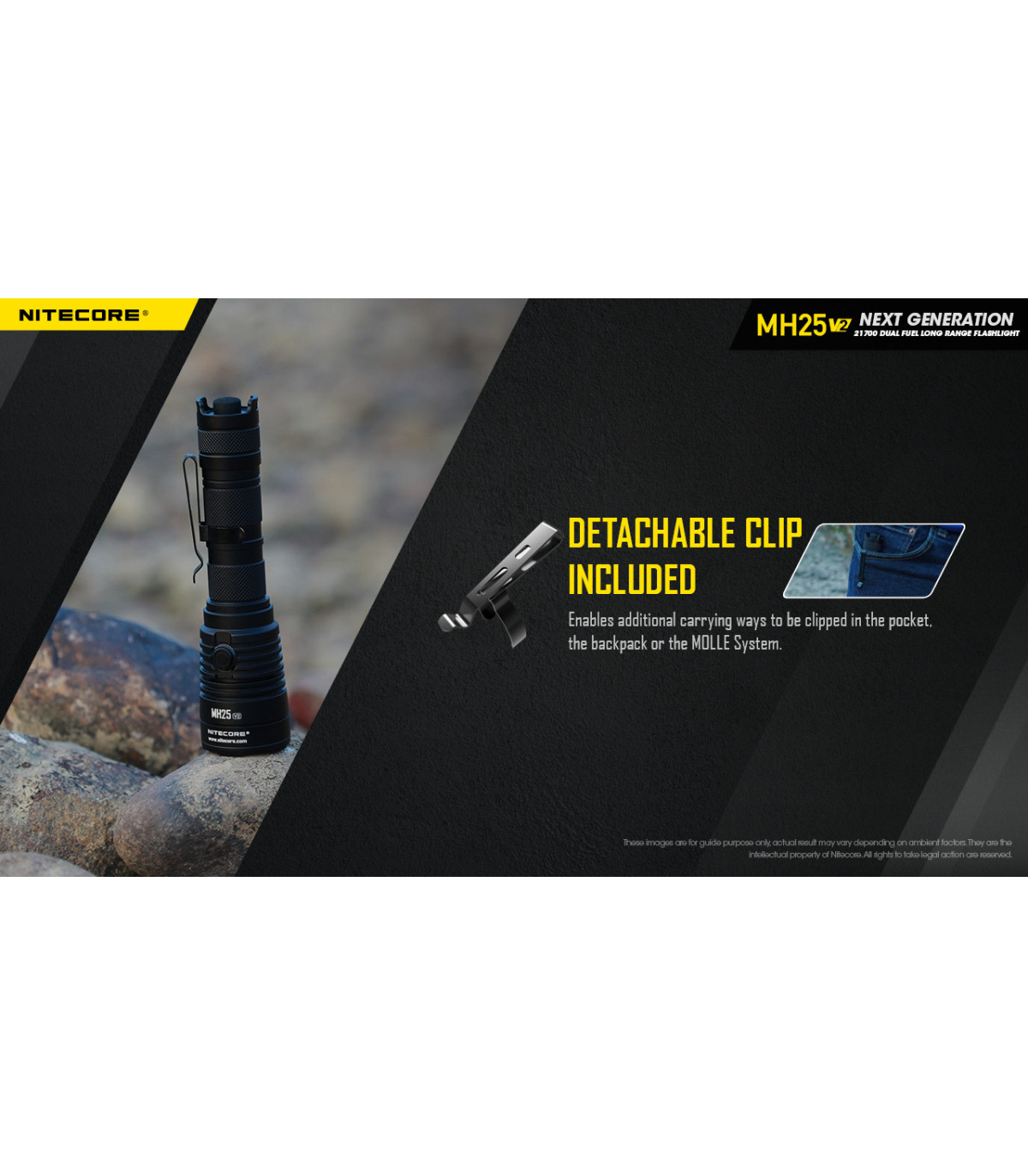 Επιτρέπει την μεταφορά του φακού με διάφορους τρόπους όπως την τσέπη, το σακίδιο πλάτης ή το σύστημα ανάρτησης MOLLE.