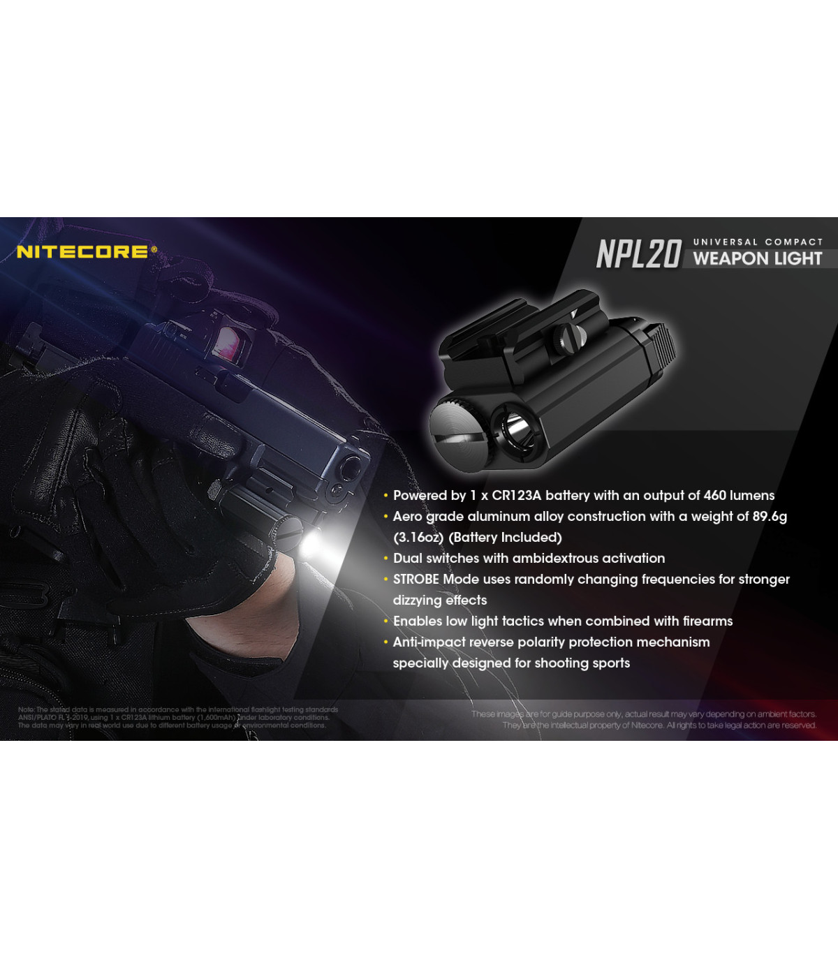 1. Μικρός σε μέγεθος φακός για όλα τα πιστόλια με μέγιστη 460 Lumens