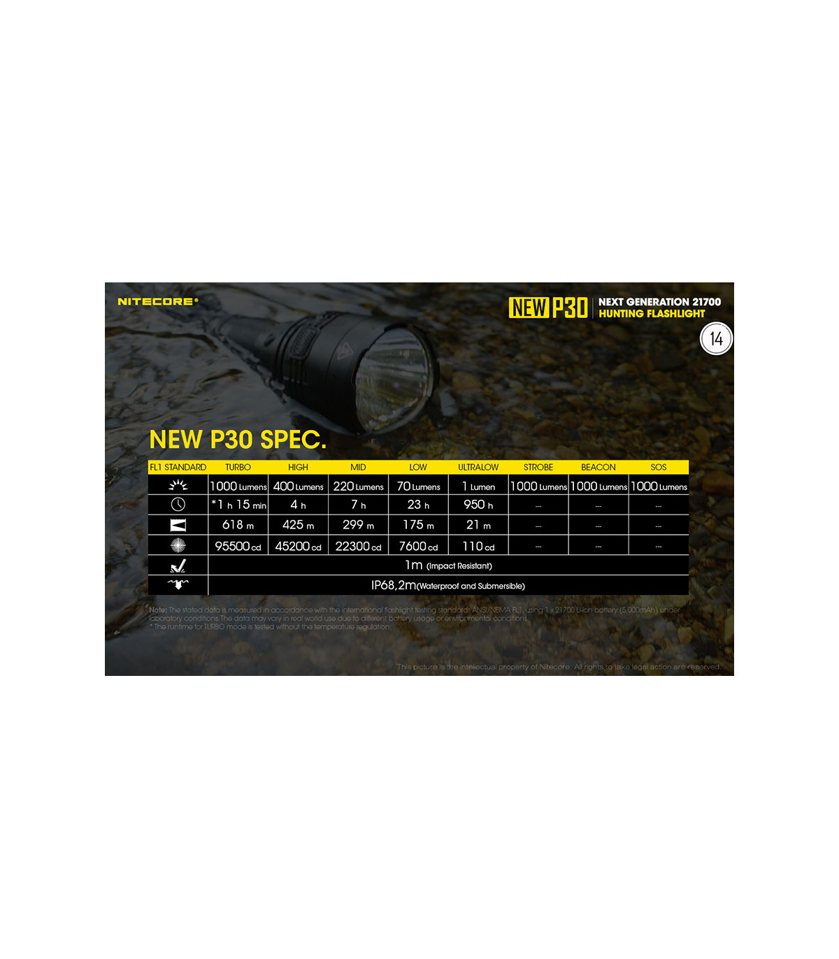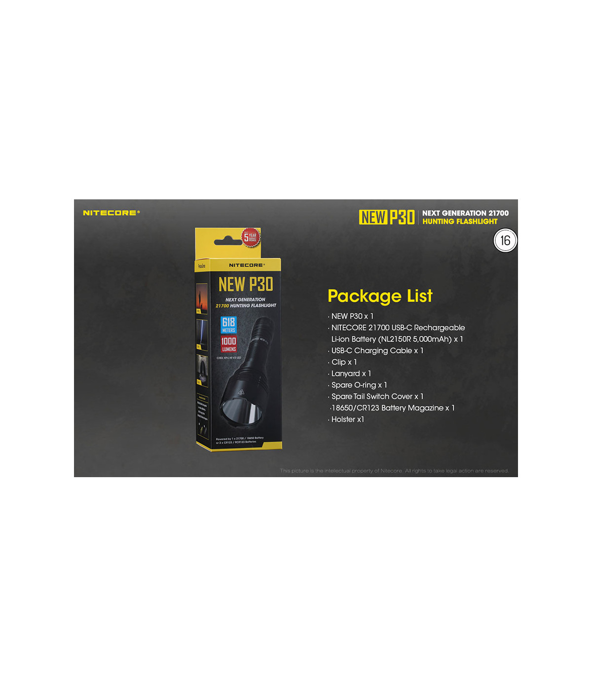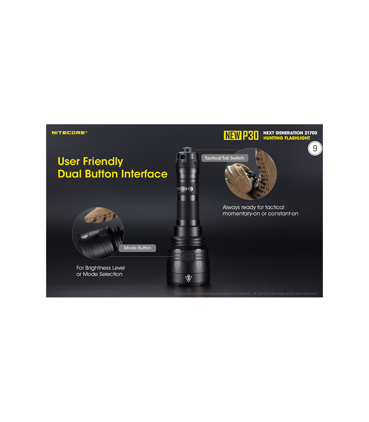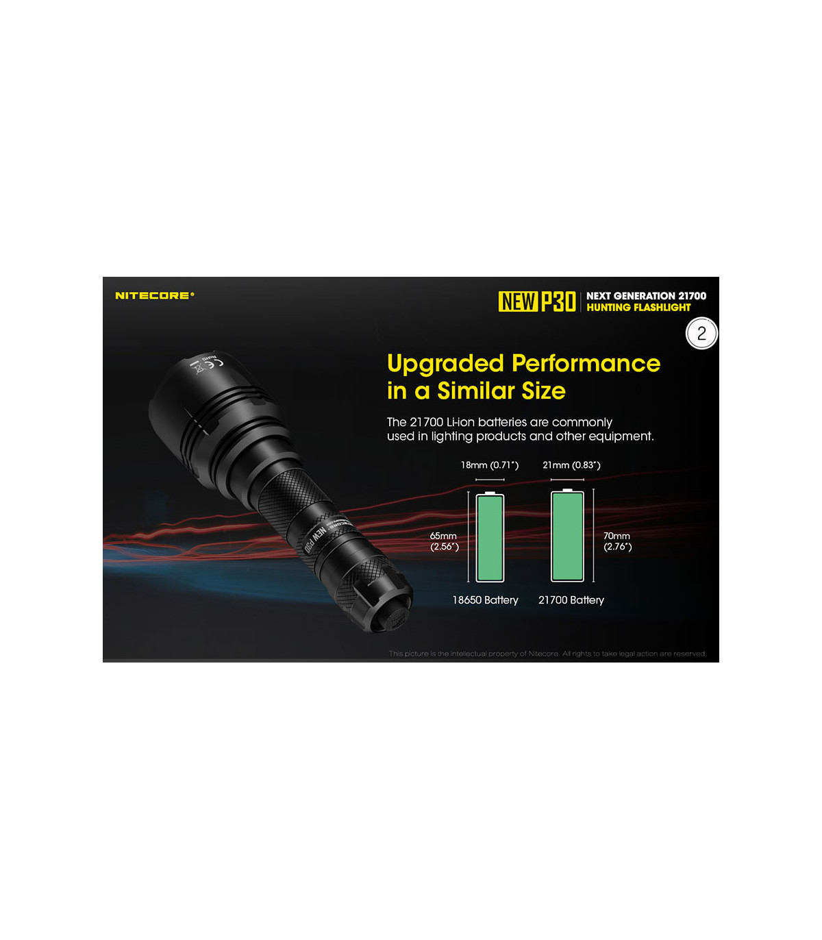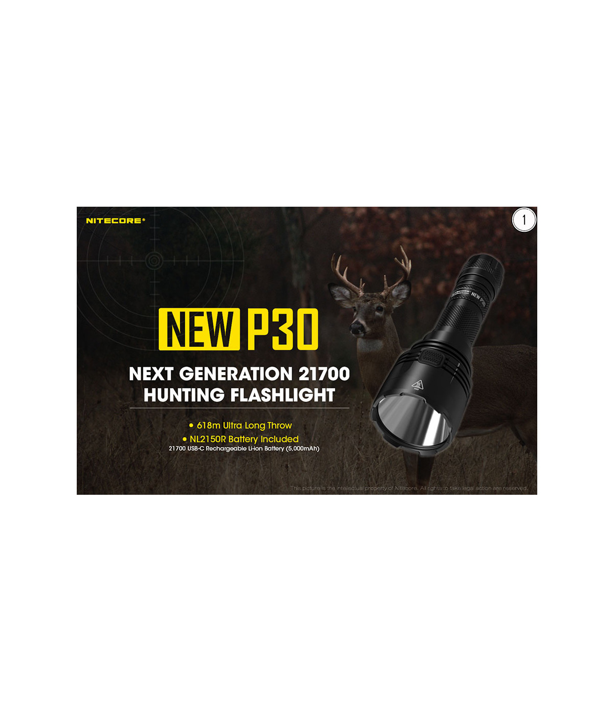 1. NITECORE NEW P30 . Φακός LED νέας γενιάς που λειτουργεί με μπαταρία 21700.