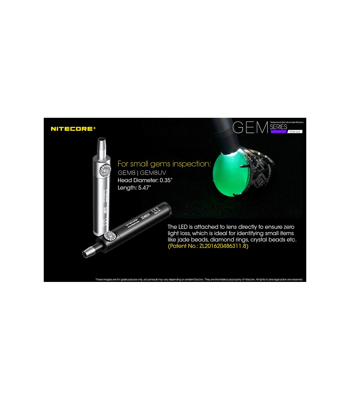Τα μοντέλα GEM8 / GEM8UV είναι ειδικά σχεδιασμένα για τον έλεγχο μικρού μεγέθους πολύτιμων λίθων όπως χάντρες νεφρίτη, διαμαντένια δαχτυλίδια, κρυστάλλινες χάντρες κ.α.