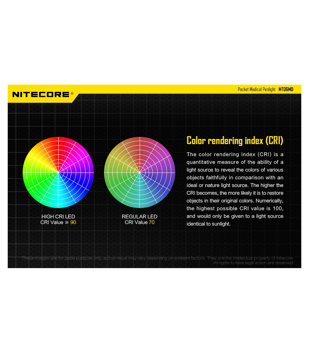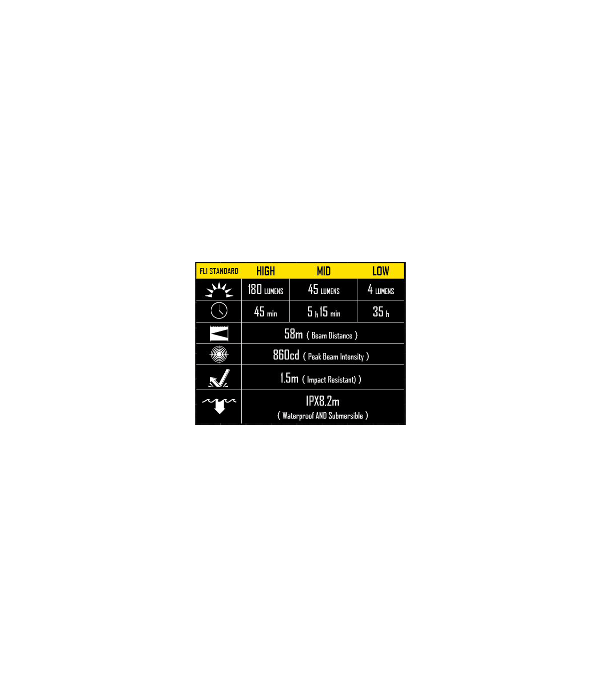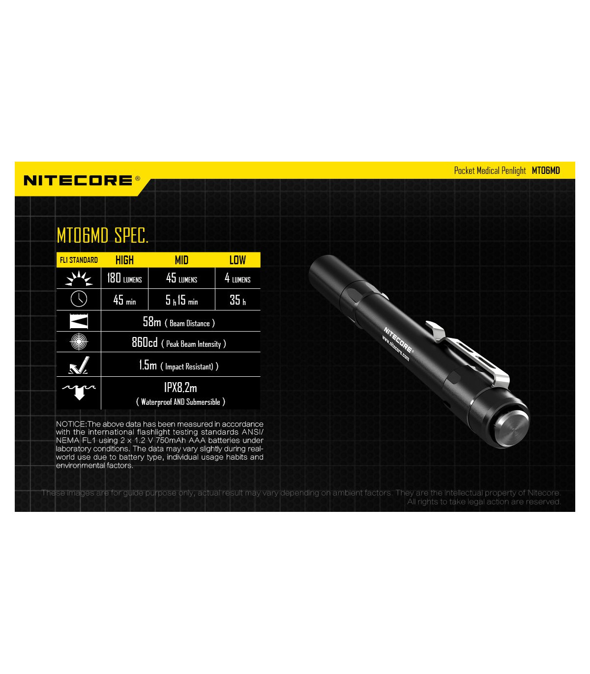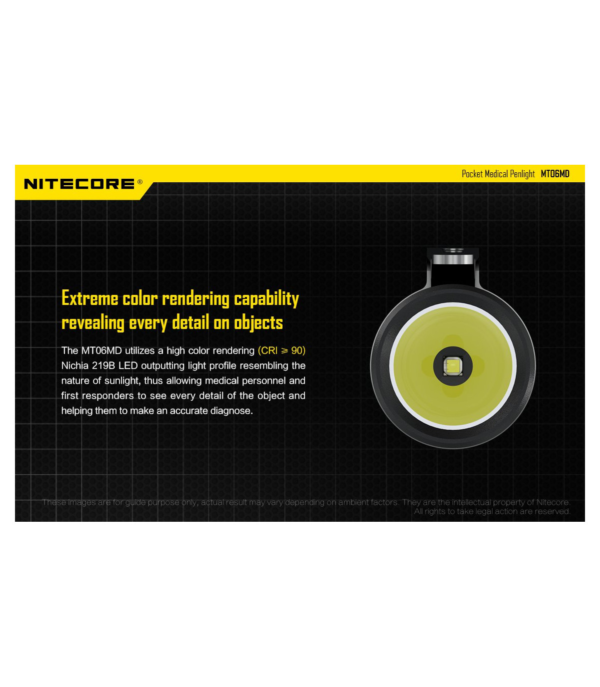 – Διαθέτει ένα LED Nichia 219B (CRI>90) με μέγιστη ένταση 180 Lumens