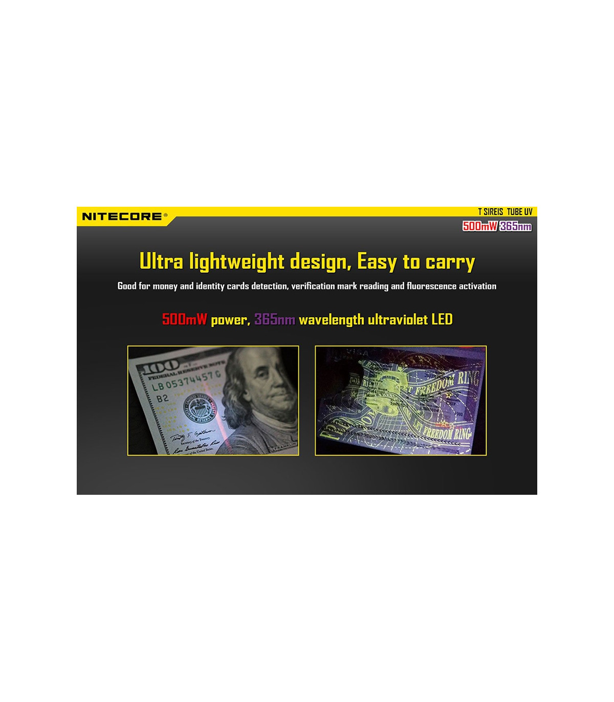 – Ιδανικός για χαρτονομίσματα, για ανίχνευση δελτίων ταυτότητας, ανάγνωση σημάτων επαλήθευσης και ενεργοποίηση φθοριζόντων υλικών.