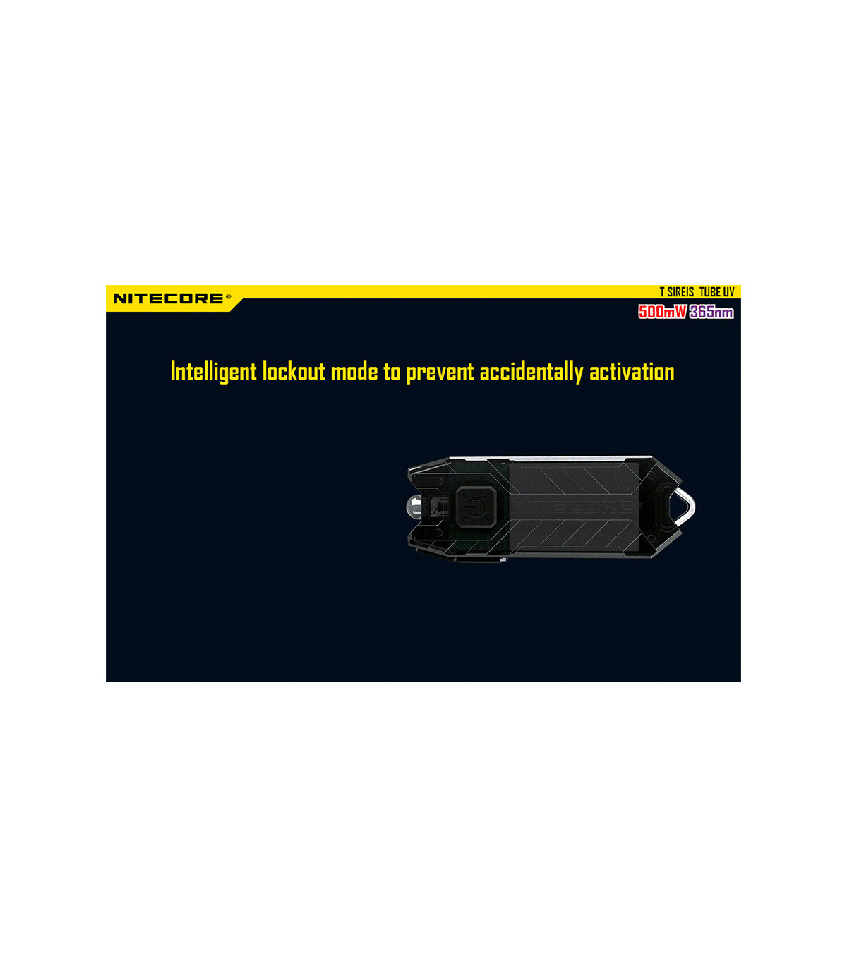 Πολύ ελαφρύς, επαναφορτιζόμενος (ενσωματωμένη μπαταρία) φακός μπρελόκ με LED υπεριώδους ακτινοβολίας. Ιδανικός για αναγνώριση πιστωτικών καρτών, σημάτων πιστοποίησης και γενικά ενεργοποίησης φθοριζόντων υλικών. Η ενσωματωμένη μπαταρία ιόντων λιθίου παρέχει συνεχόμενο φωτισμό έως και μία ώρα. Διαθέτει κύκλωμα προστασίας από την αποφόρτιση και την υπερφόρτιση καθώς επίσης προστασία από βραχυκύκλωμα. Η φόρτιση σταματά αυτόματα όταν φθάσει στο 100%. Μπλε ενδεικτική λυχνία ανάβει σταθερά κατά την διάρκεια της φόρτισης.