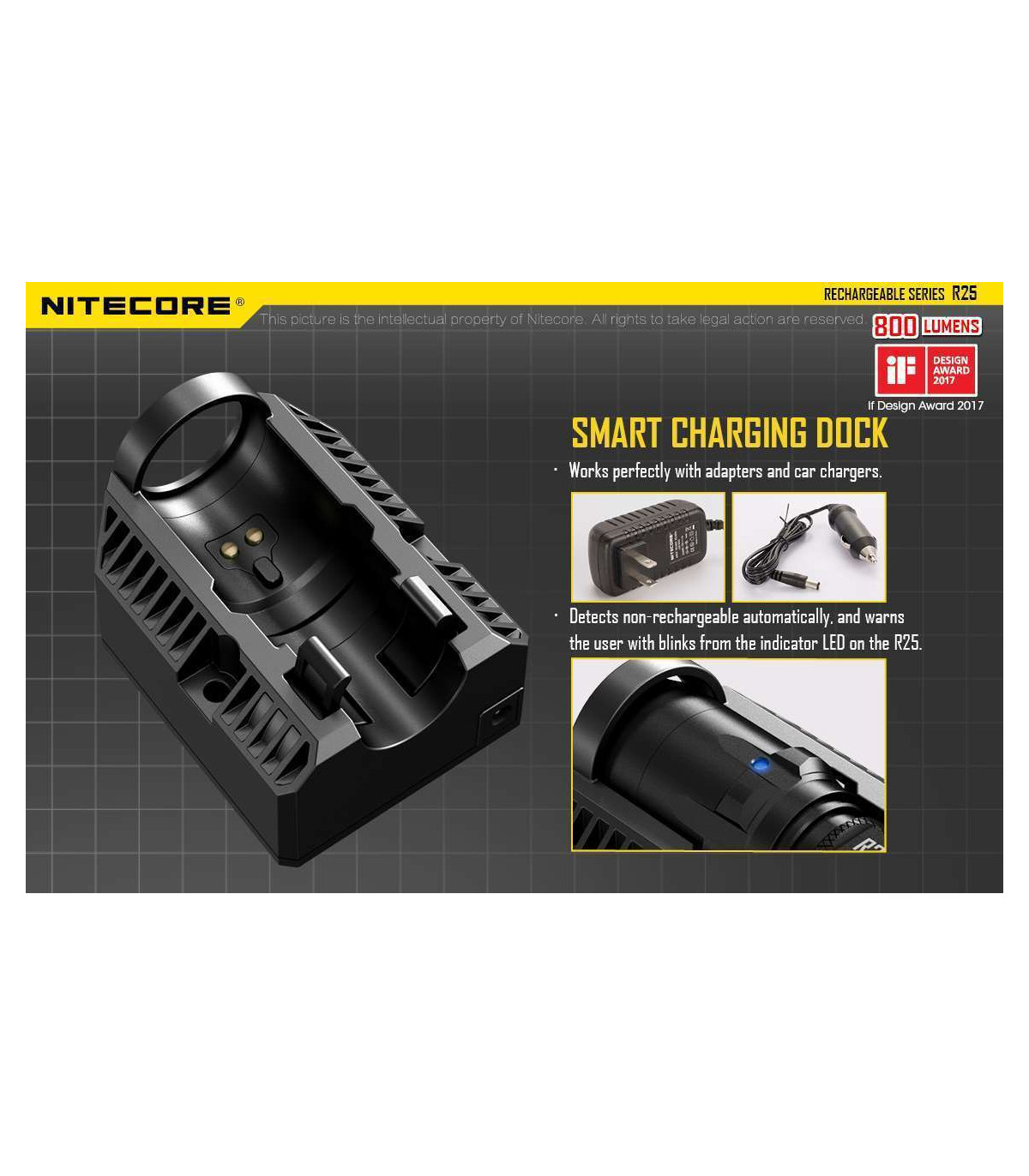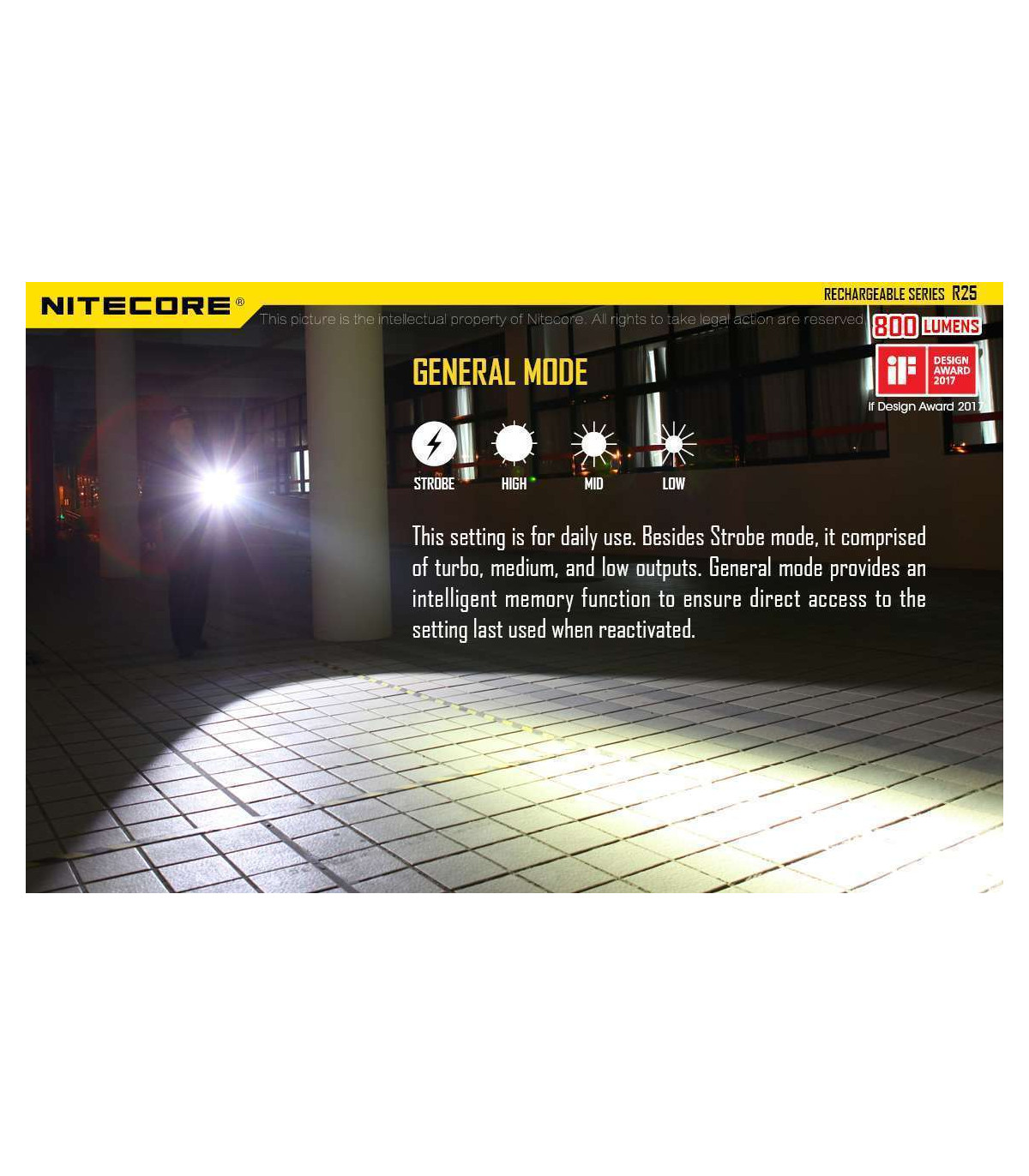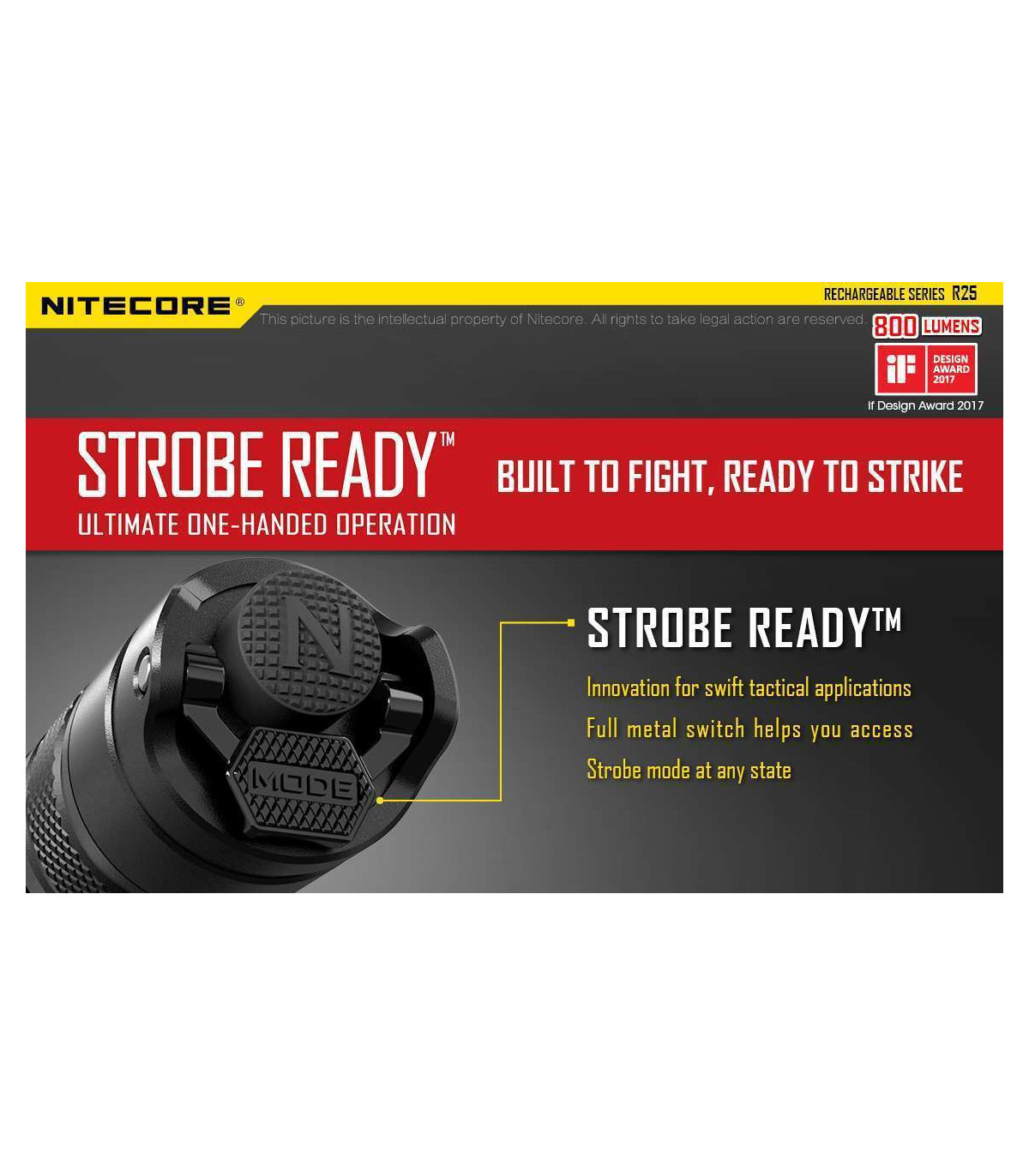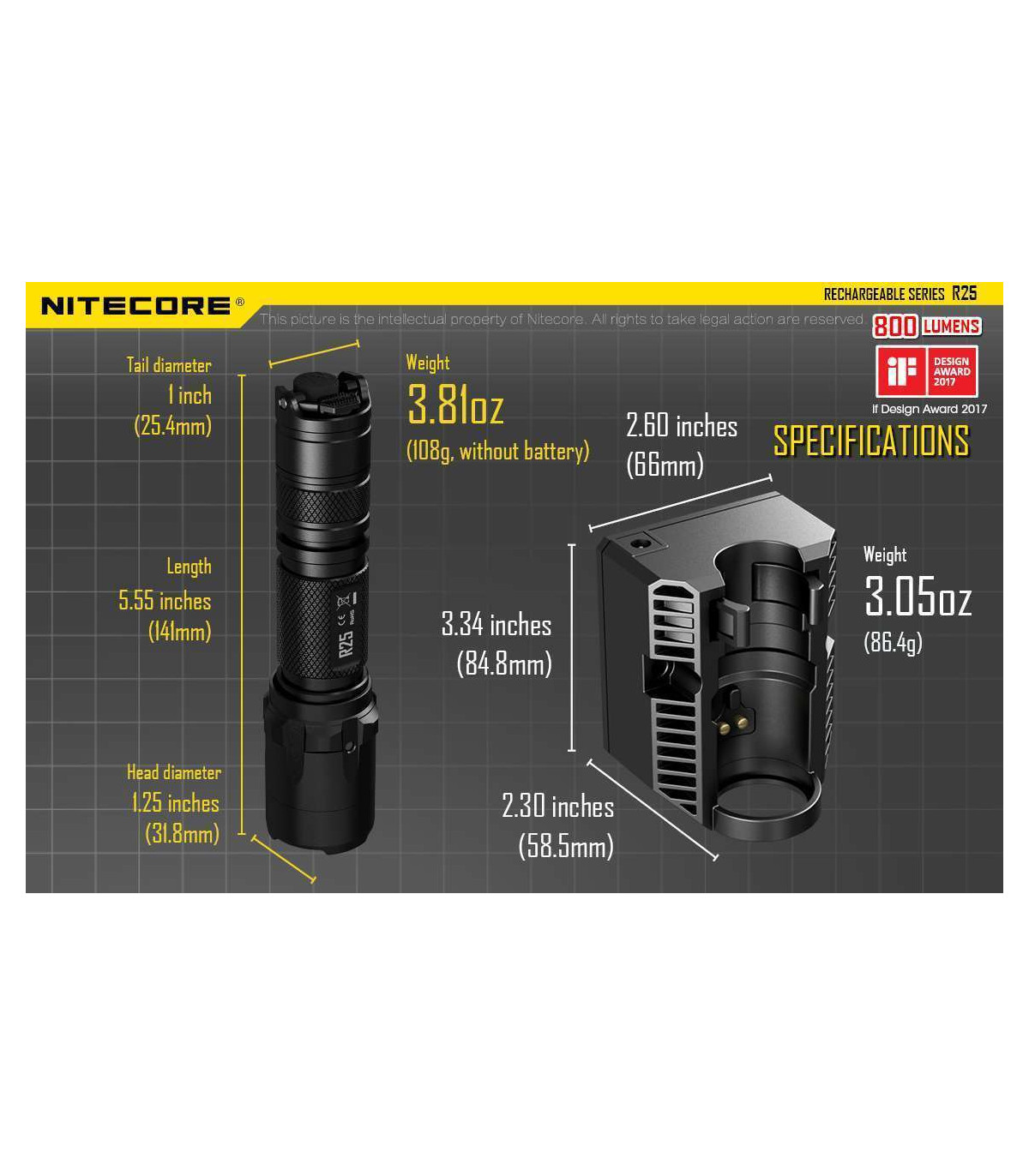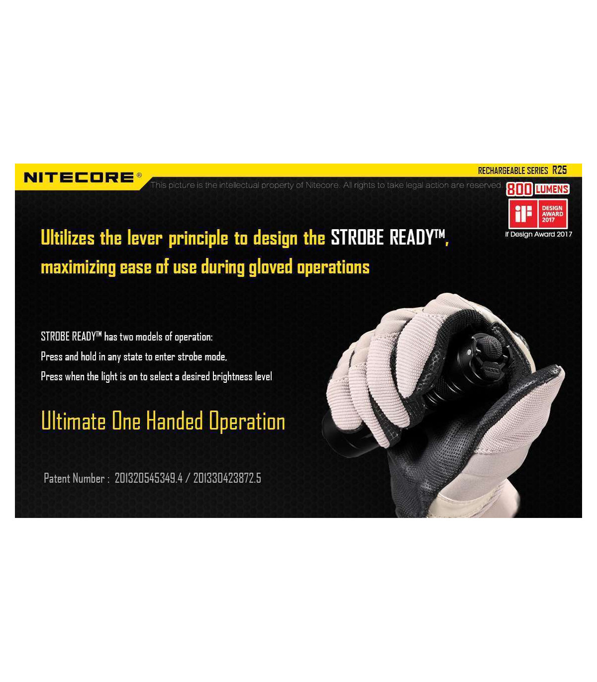 The Nitecore R25 is the first light released in Nitecore's new Rechargeable series and comes with everything you need to get up and running with your new light. Designed for law enforcement and security agencies, this 800 max lumens light has three modes to customize your light to any task.