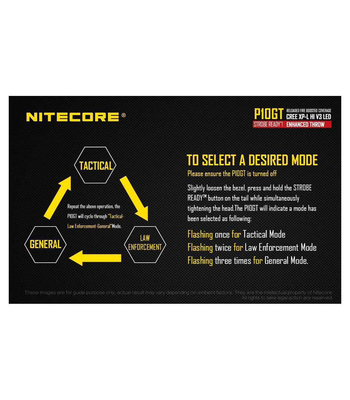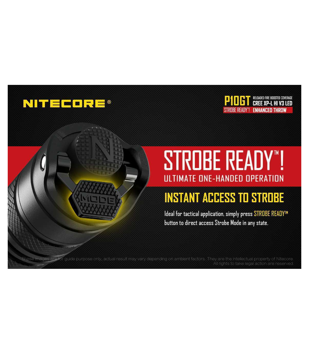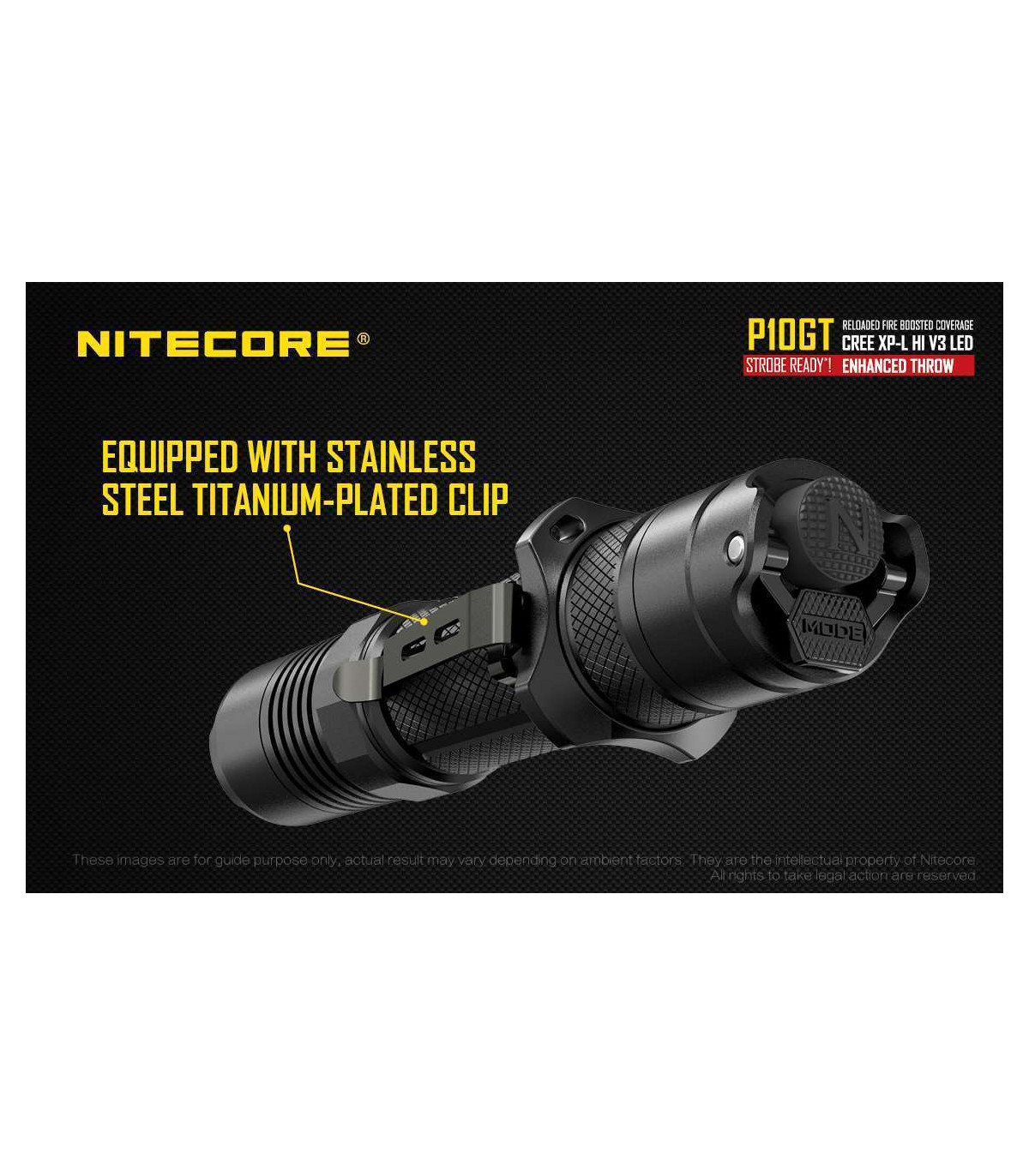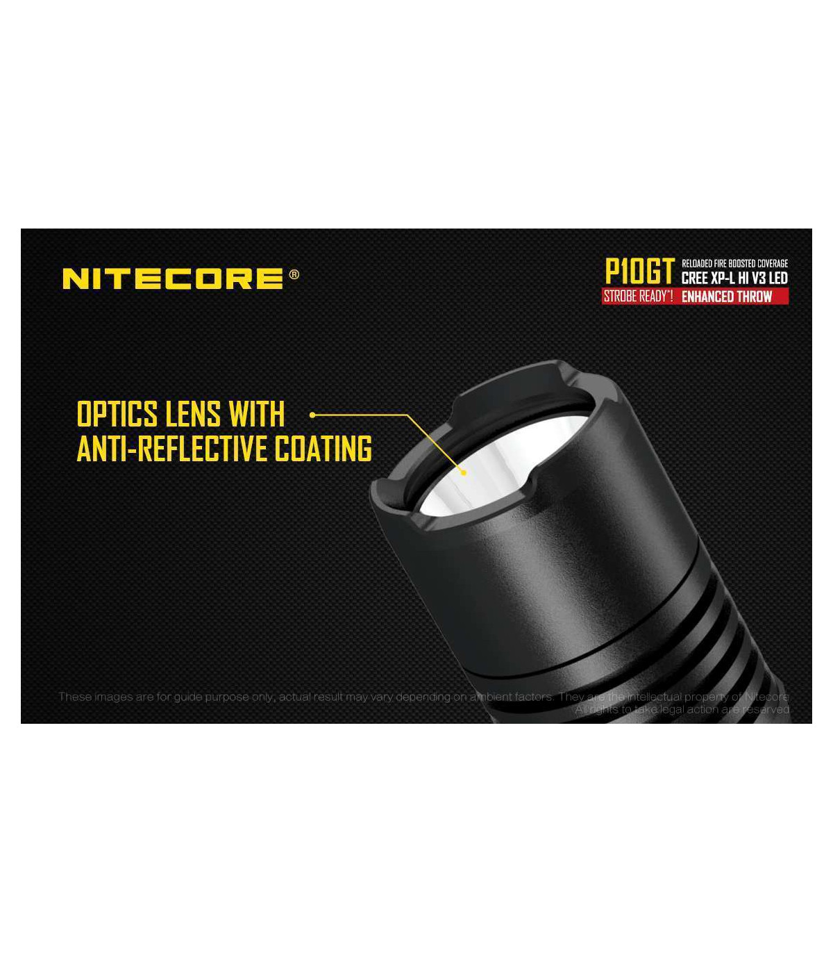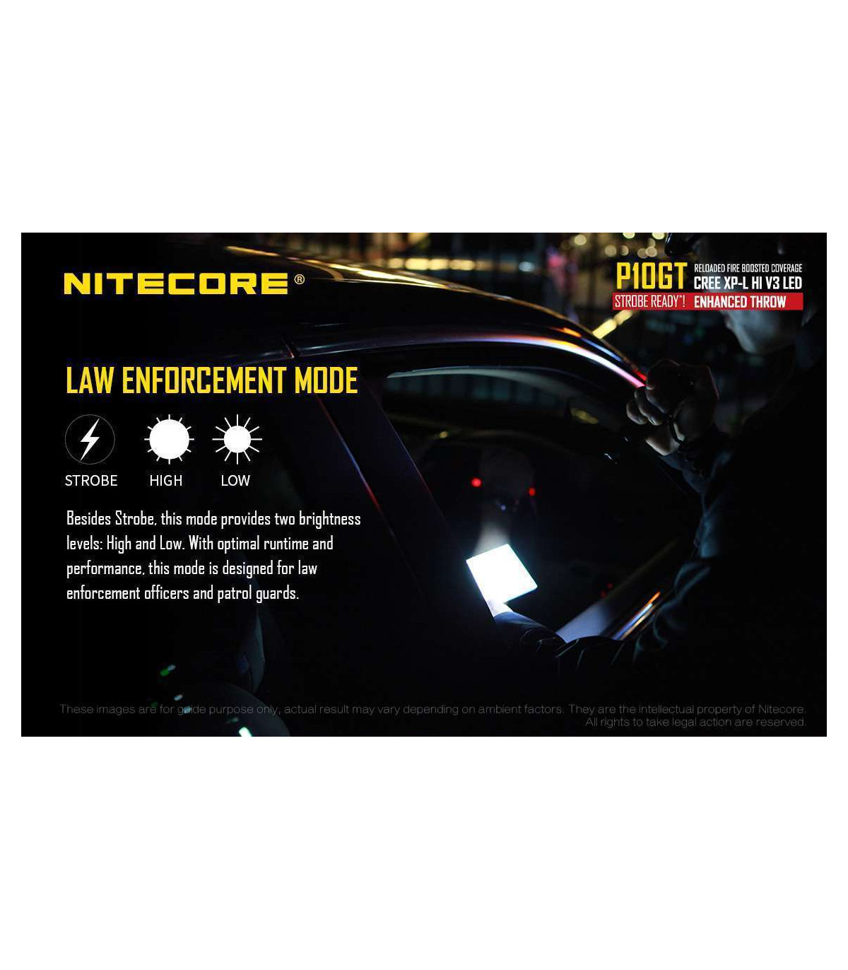 The Nitecore P10GT is the new and improved P10. This high performance tactical flashlight now utilizes a CREE XP-L HI V3 LED and offers up to 900 lumens of light and 312 yards throw. Weapon mountable, this flashlight is ideal for law enforcement, hunting and tactical uses.