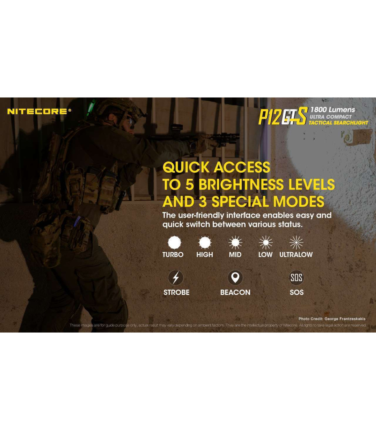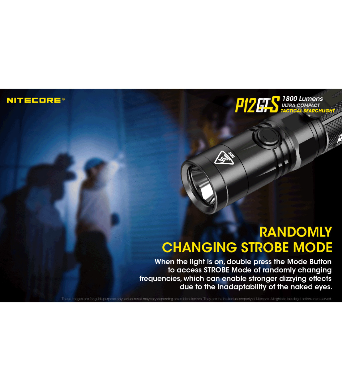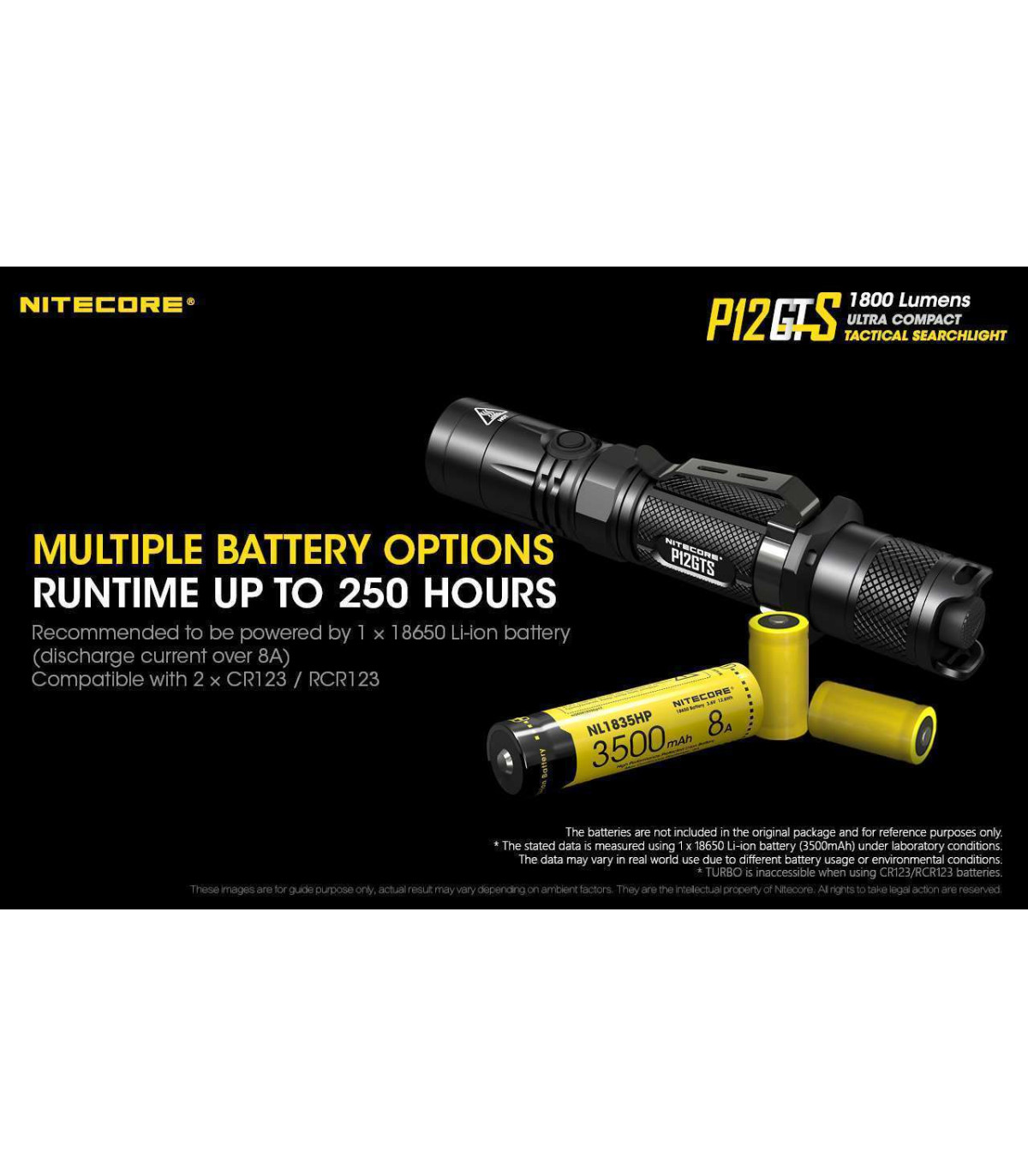 The Nitecore P12GTS takes your favorite P12 to the next level with a blinding 1800 lumen max brightness. Designed for everyday carry, professional and outdoor use, the P12GTS is sure to be an instant favorite.