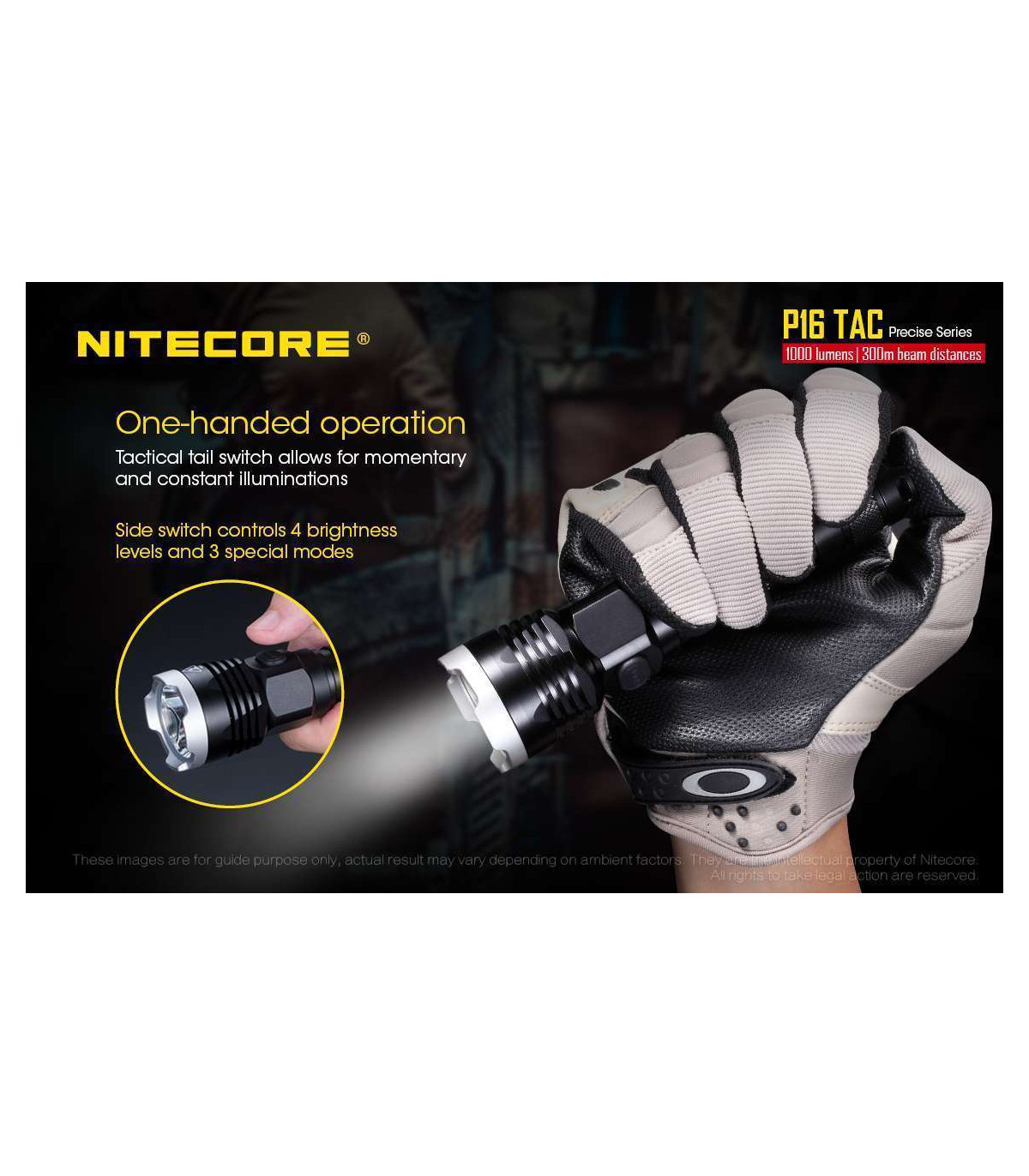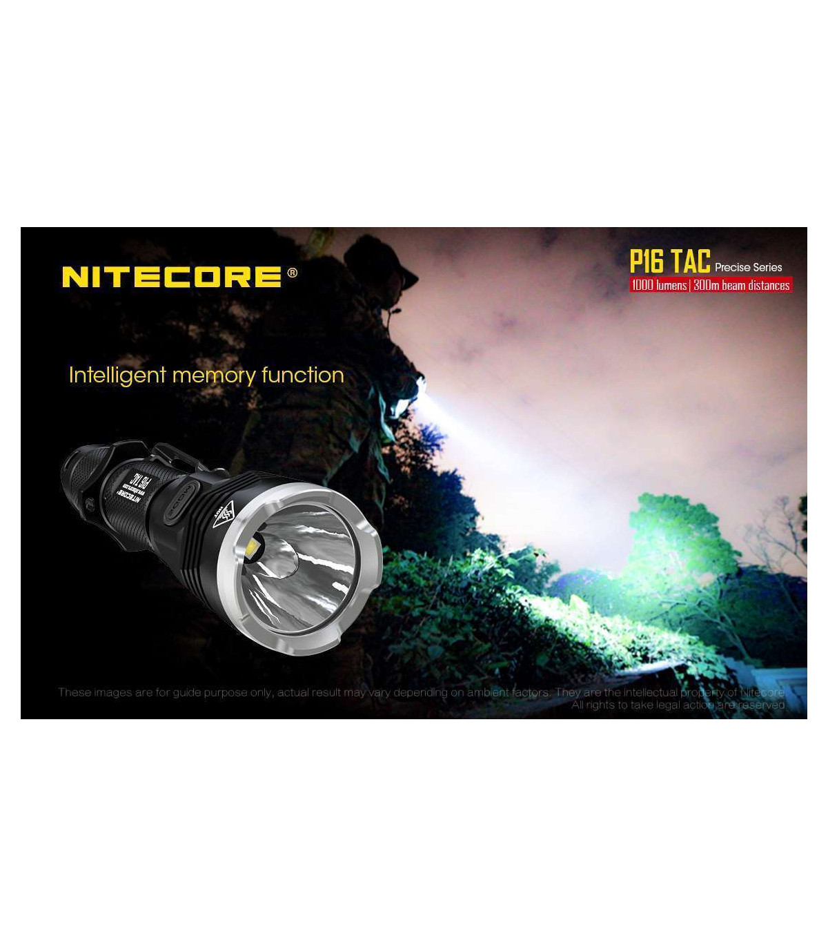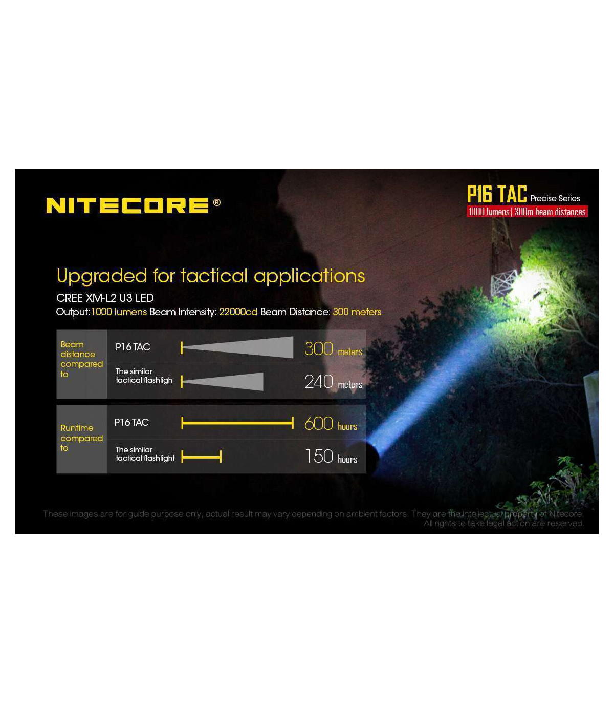 The Nitecore P16 TAC is a 1000 lumens LED flashlight and is the ultimate lighting tool for tactical and hunting applications.