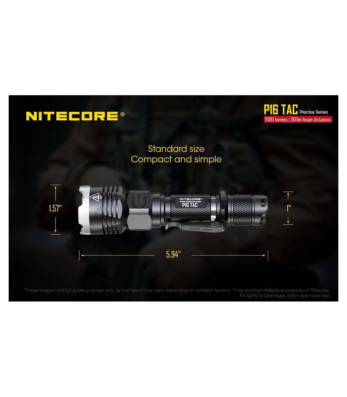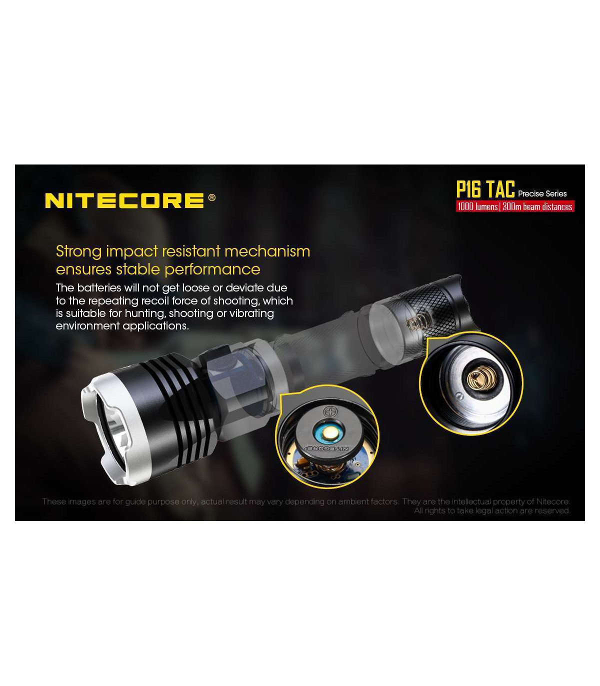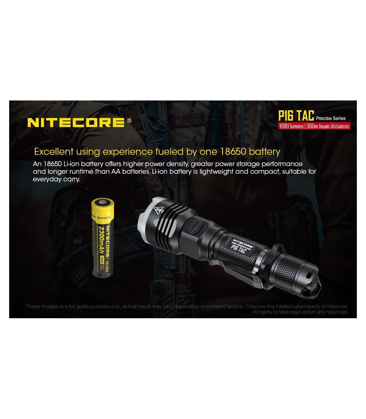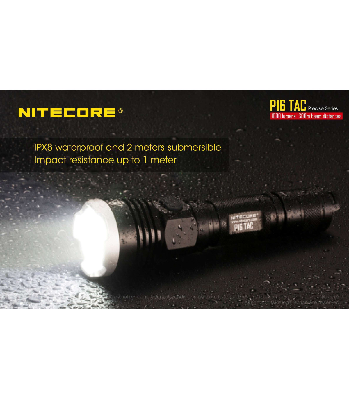 The Nitecore P16 TAC is a 1000 lumens LED flashlight and is the ultimate lighting tool for tactical and hunting applications.