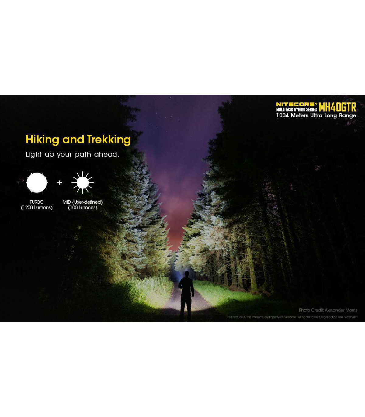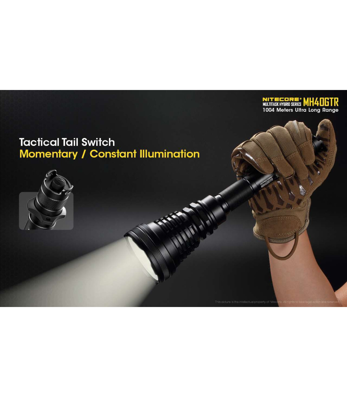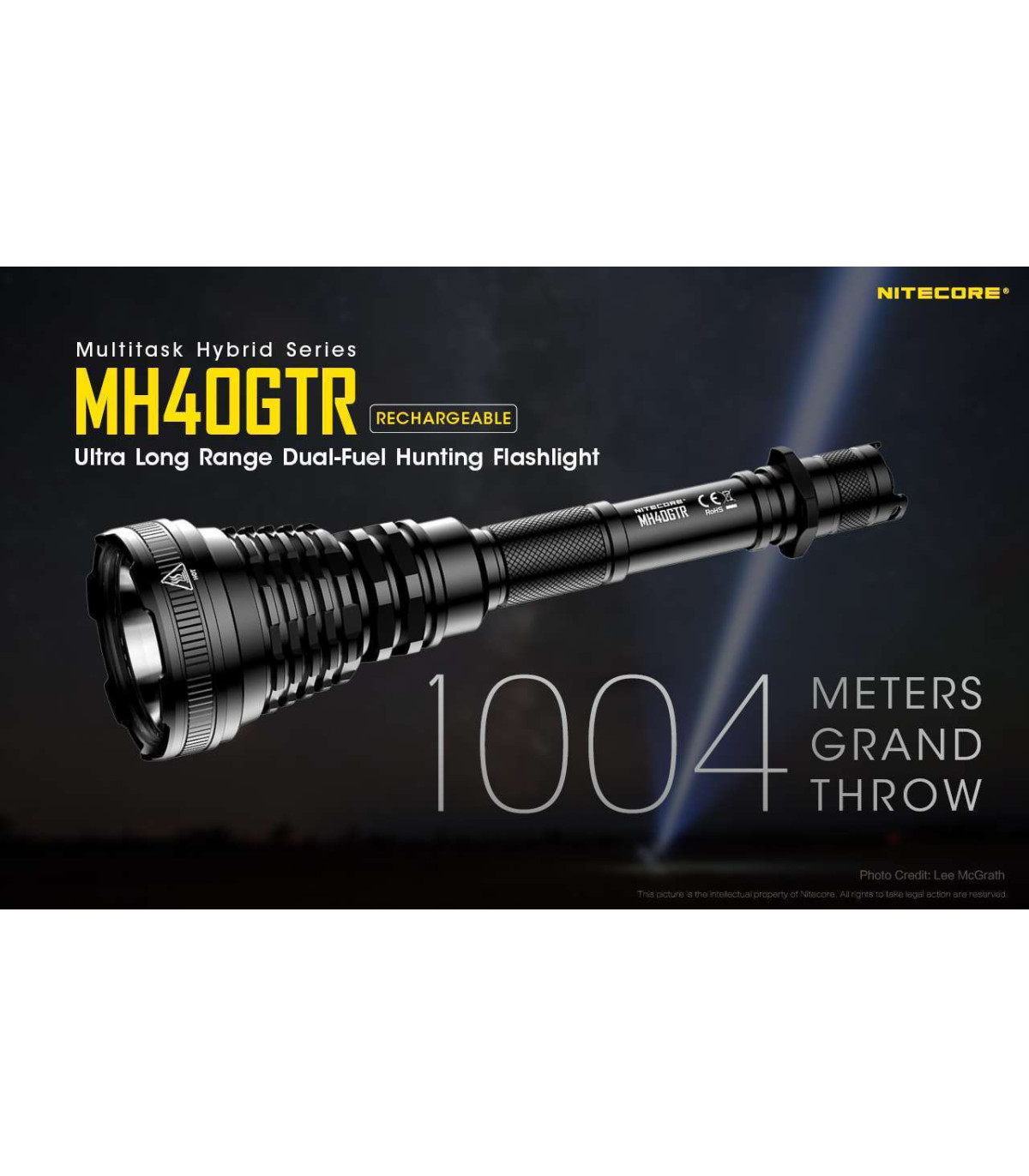 Ο NITECORE MH40GTR είναι ένας πολύ ισχυρός και ευέλικτος φακός, σχεδιασμένος για επαγγελματική χρήση αλλά και για απαιτητικές περιπέτειες. Διαθέτει LED CREE XP-L Hi V3, το οποίο παρέχει φωτεινότητα έως 1200 lumens. Ο ανακλαστήρας υψηλής ακρίβειας επιτρέπει δέσμη φωτός που φτάνει σε απόσταση έως 1004 μέτρα.
