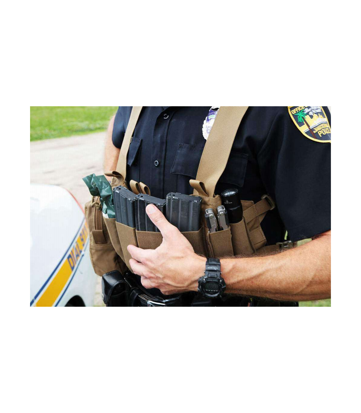 Designed as an ultralight fighting load - holding 4 M4 or similar sized magazines with 3 x 3 MOLLE fields on either side for mounting Trauma Kit NOW!, pistol mag pouches, utility pouches, or any other MOLLE compatible pouches. 4 Ten-Speed M4 mag pouches can fit smoke grenades, flash bangs, GPS units, dressings, tourniquets, small radios, cans of dip, and similar sized rifle or SMG mags.