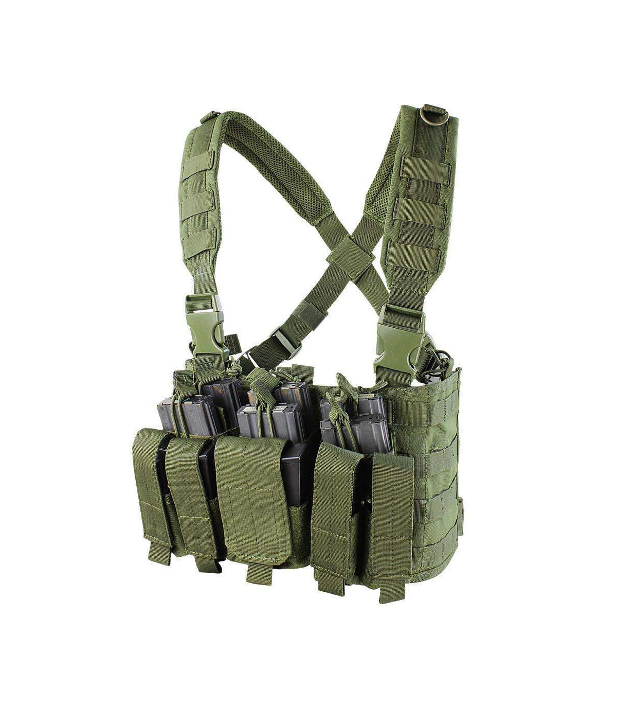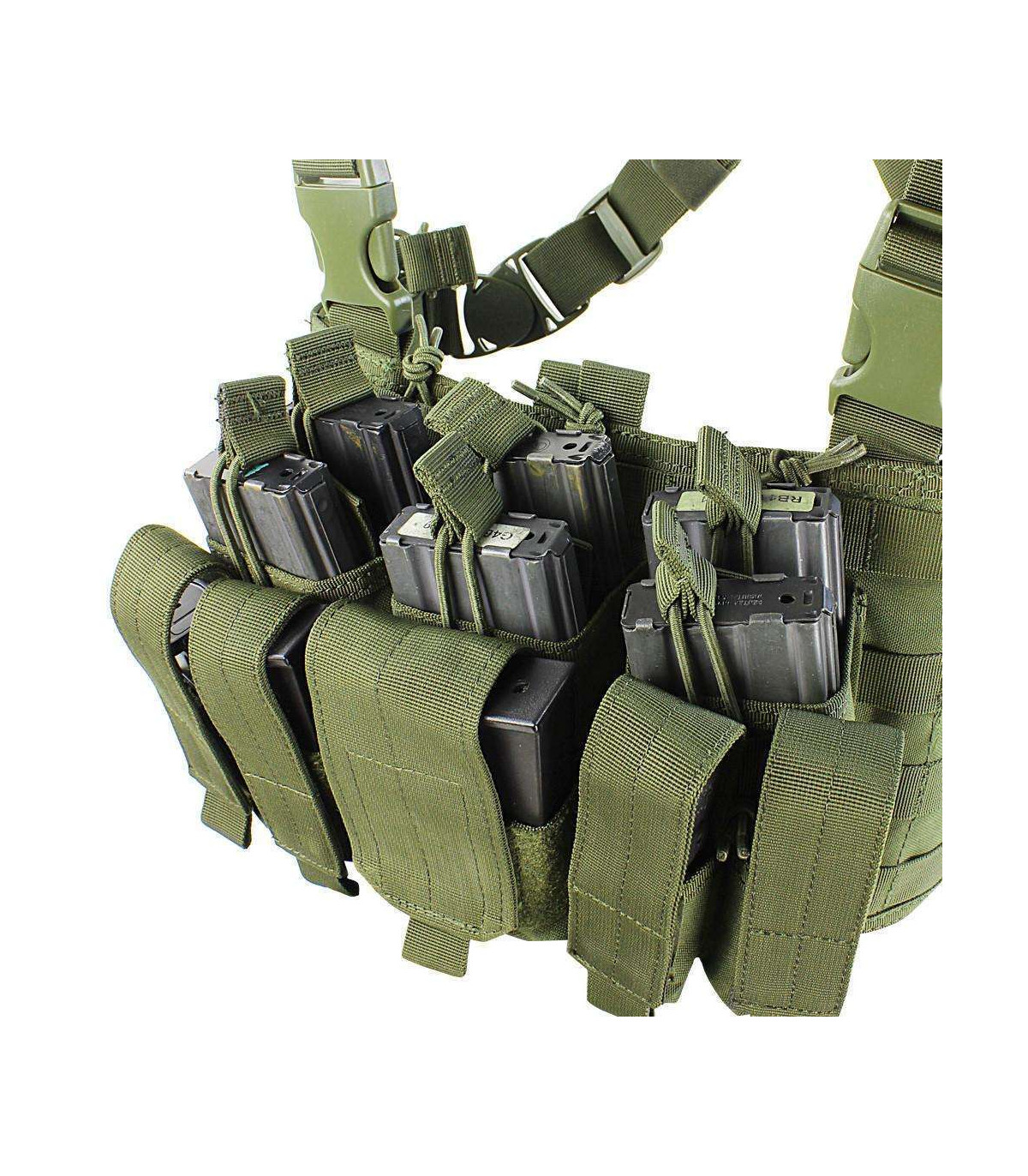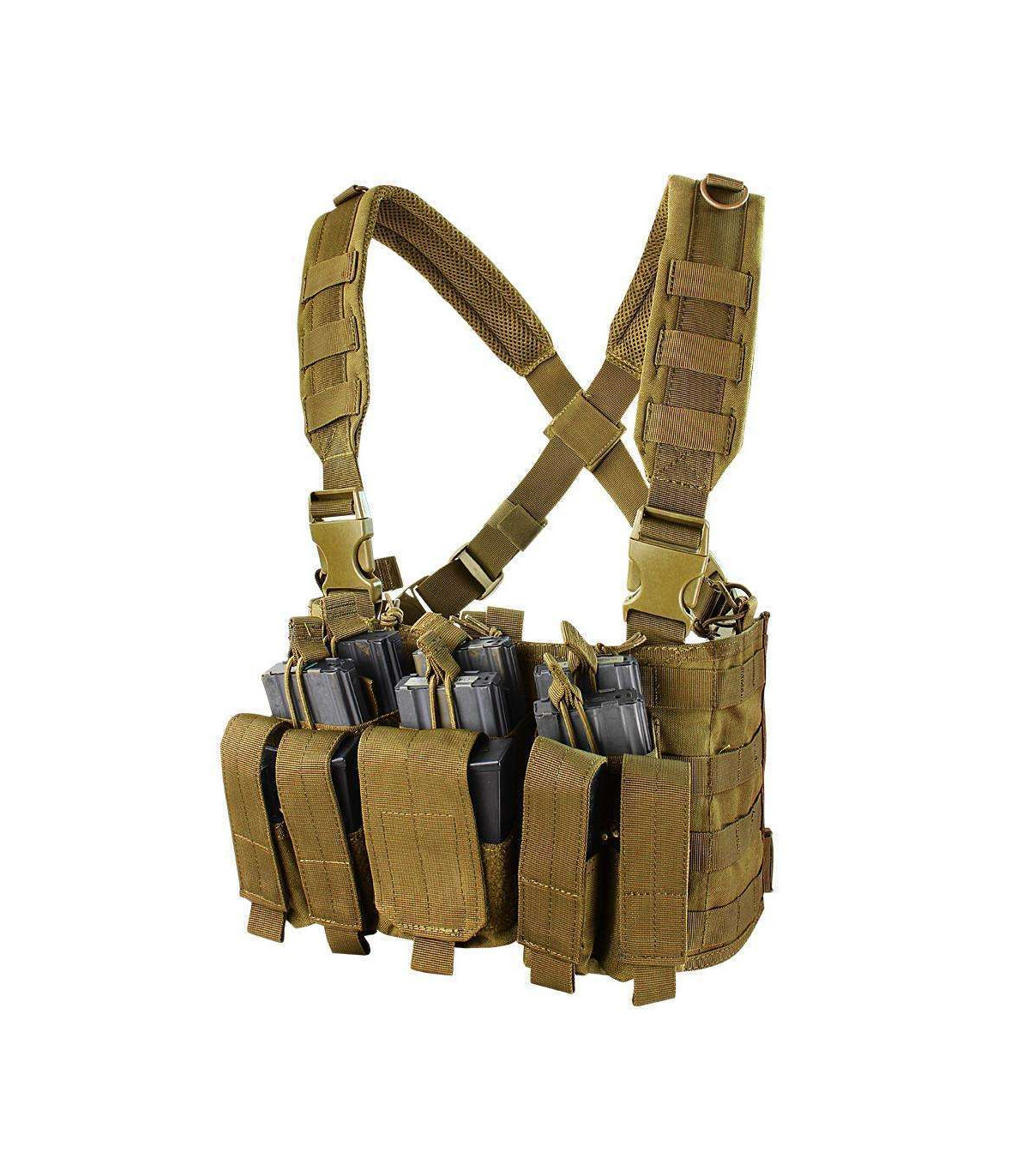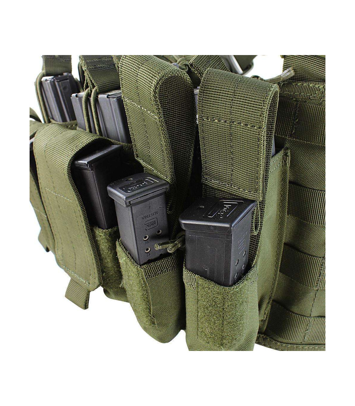 The Condor Recon Chest Rig is designed with built-in stacker/kangaroo style mag pouches to allow the user rapid, seamless access to mags for faster reloads with up to six AR/M4 mags and six pistol mags. The adjustable and removable flaps on the pistol pouches also allow the user to keep a knife, multi-tool, or other small accessories close at hand while training or on duty. This Condor Recon chest rig setup also features an interior mesh pocket for safely storing items close to the body. Swivi-Lockster quick-release buckles allow you to remove the chest rig quickly and easily when necessary. With grommets for drainage and padded cross-back shoulder straps, this Condor chest rig also helps you stay comfortable and dry.