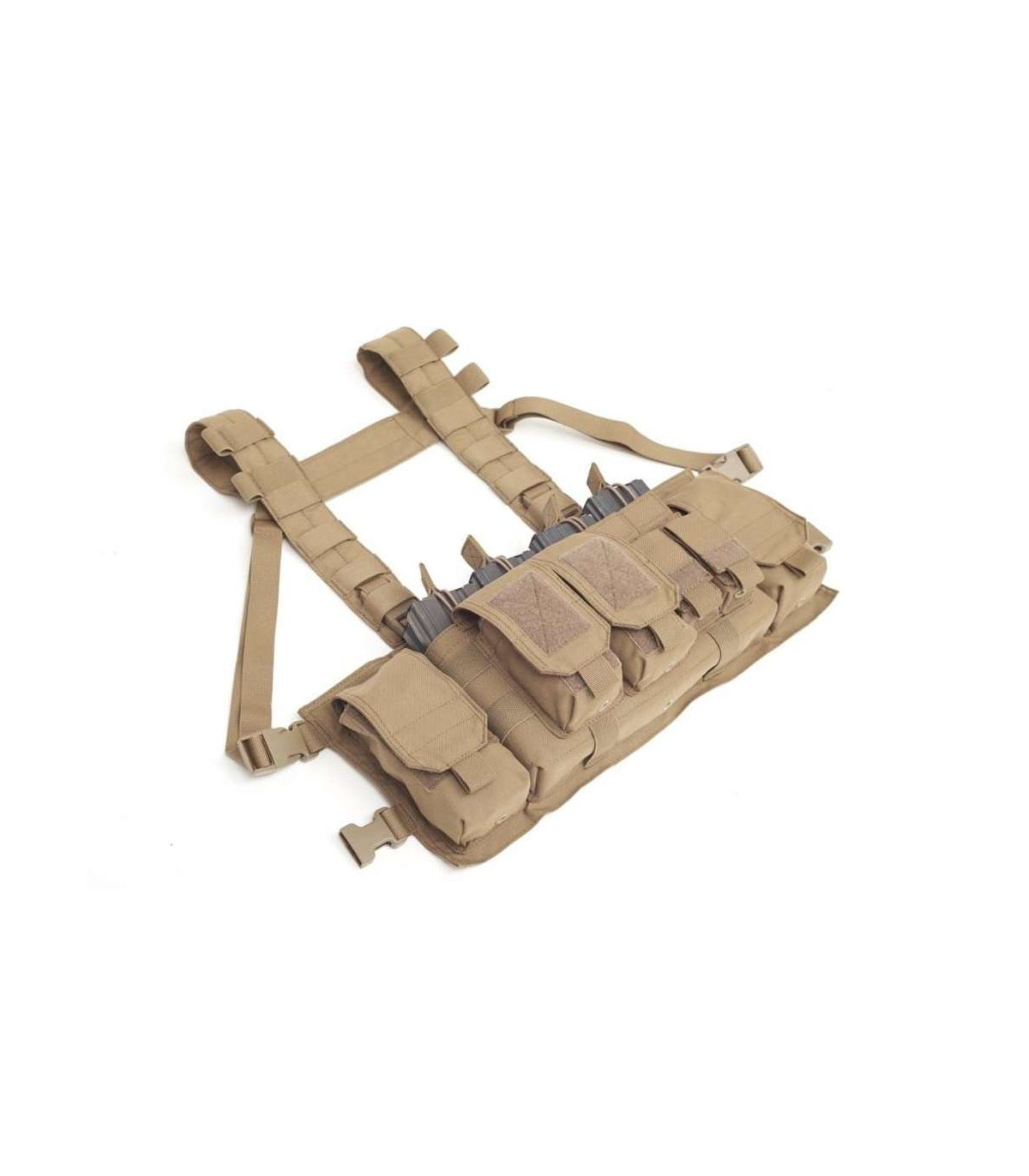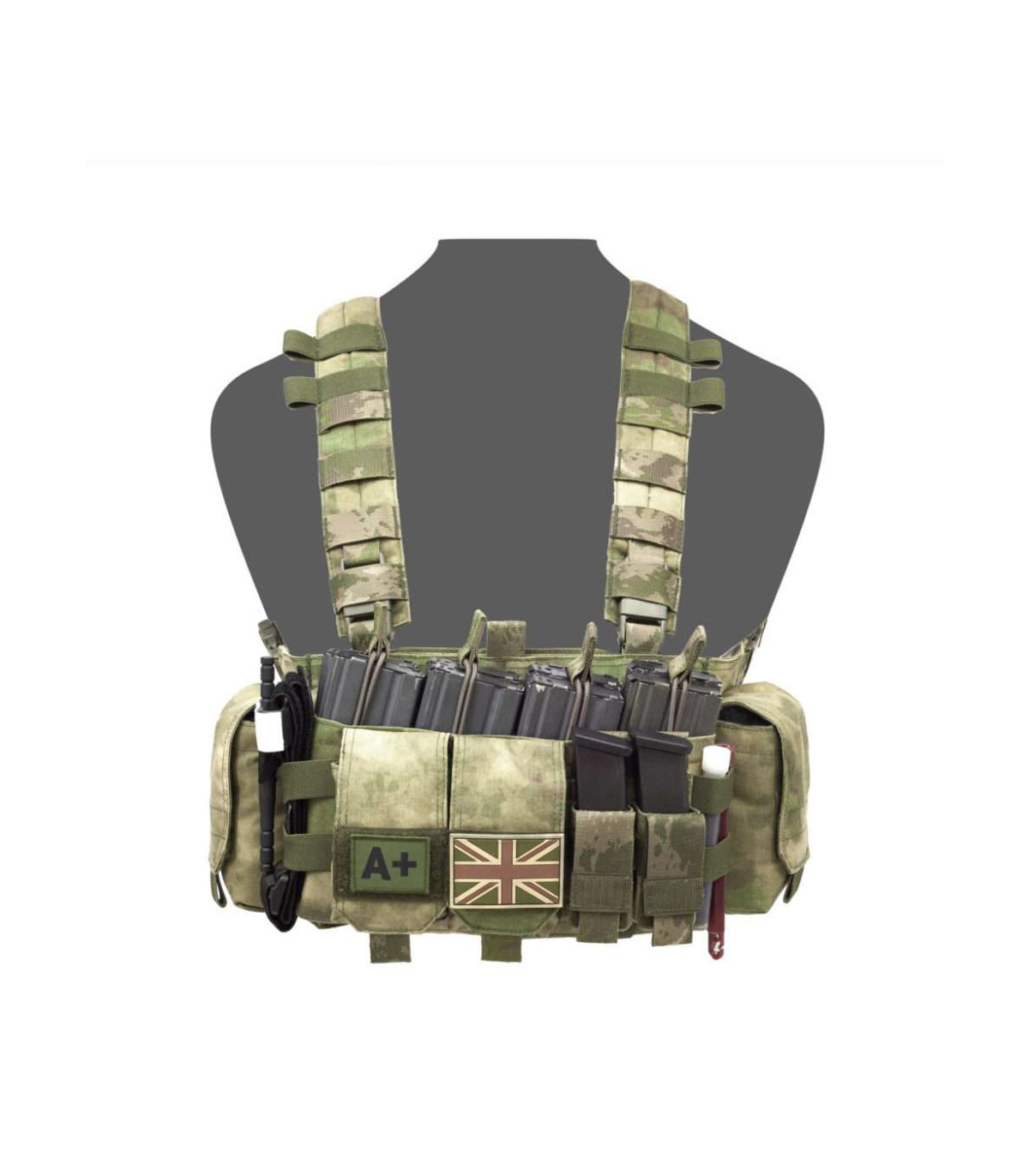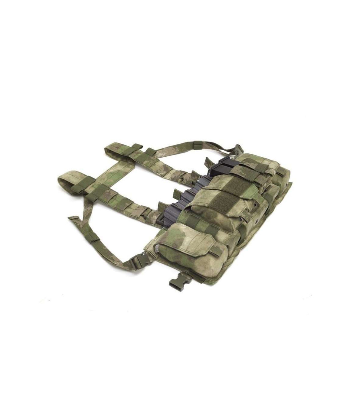 The FCR is designed to work as a compact Chest Rig in standalone configuration. The FCR accommodates 8 x M4 style mags with adjustable bungee retention which allows AK mags to be easy changed out. There are a total of 4 utility pouches. The end pouches can hold MBITR 148 radios there are elastic loops for storage of chemlights small torches etc at the sides of the end pouches. Warrior's DPDA-9 double pistol mag pouch is attached to the front of the rig with MOLLE and can be removed or replaced as required. The unique feature about the FCR is its ability to attach to Warrior’s new RPC (Recon Carrier). Simply remove the shoulder and rear straps and all the remaining clips line up with the corresponding ITW clips located on the front and sides of the RPC carrier creating a scalable platform.