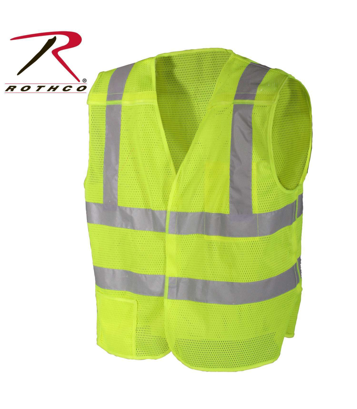 Rothco's 5-point breakaway safety vest is designed with hook and loop closures along the front, sides, and shoulders ensuring the safety vest will tear from the wearer if the hi-vis vest is caught on something. A 2-inch wide reflective tap covers the chest, waist, and shoulder for high visibility. The reflective vest is made of a 100% polyester.