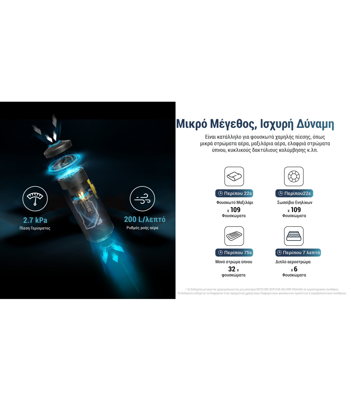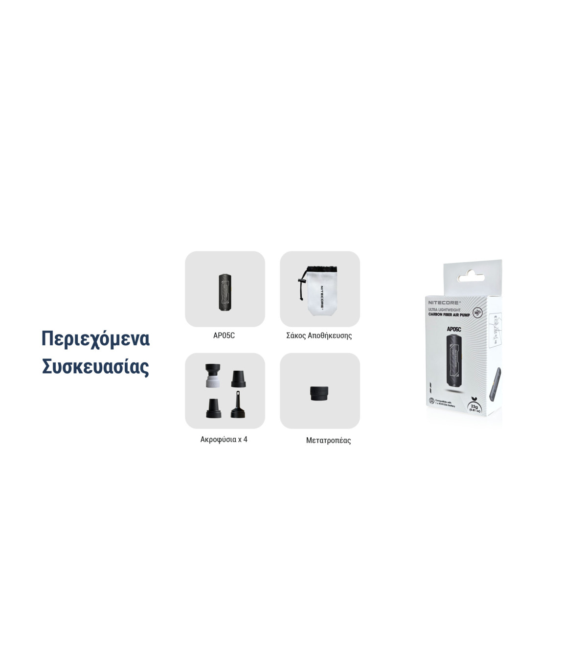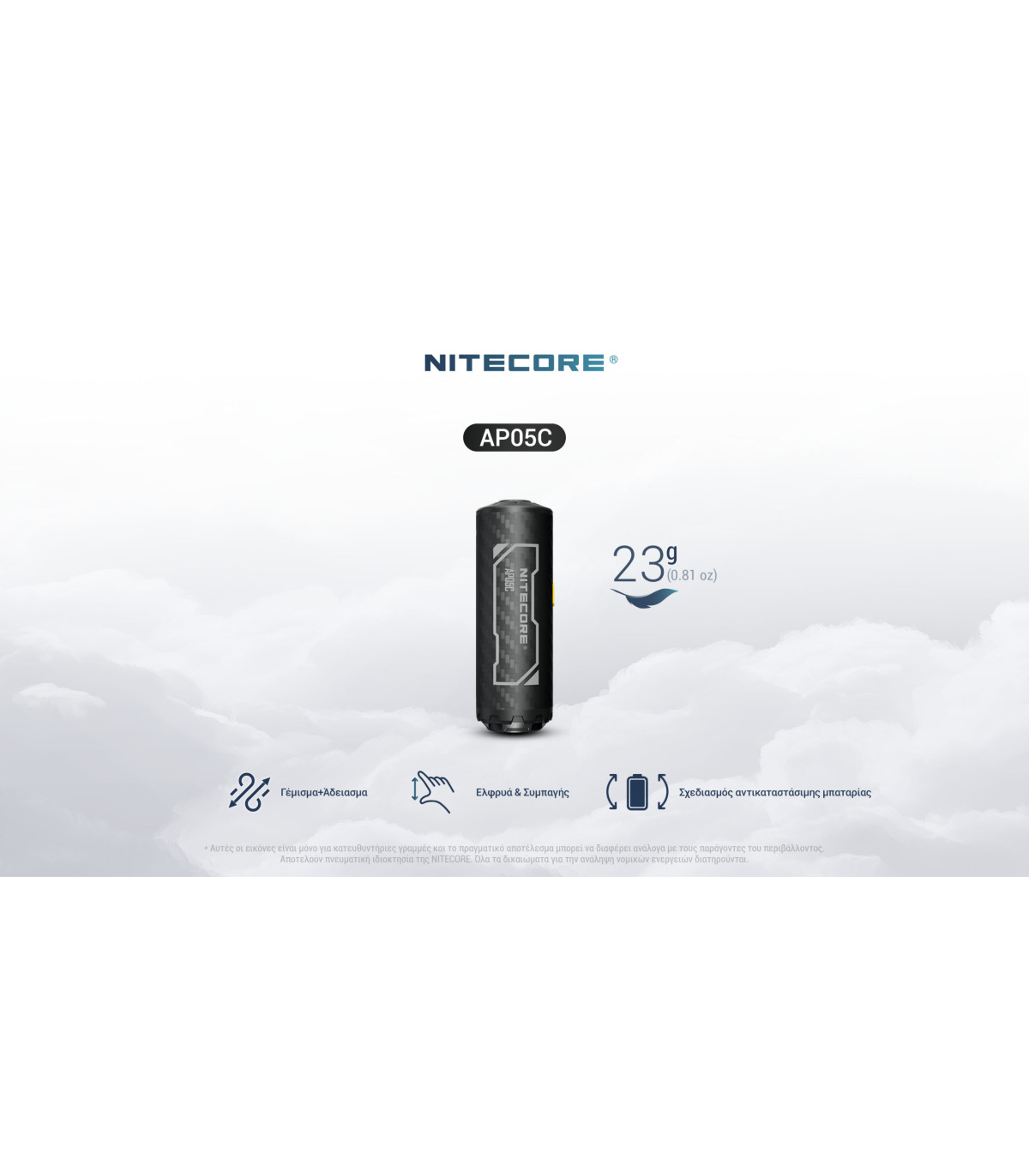 ΠΡΟΣΟΧΗ ! Η συσκευή NITECORE AP05C ΔΕΝ συνοδεύεται από μπαταρία.