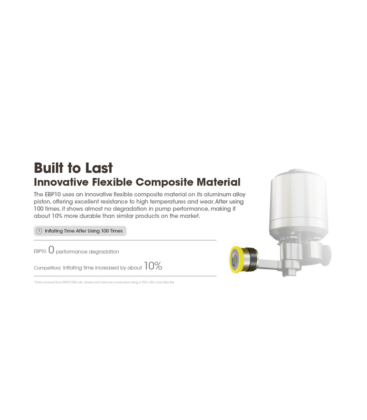 Η EBP10 χρησιμοποιεί ένα καινοτόμο εύκαμπτο σύνθετο υλικό στο το έμβολο από κράμα αλουμινίου, προσφέροντας εξαιρετική αντοχή σε υψηλές θερμοκρασίες και τη φθορά.
