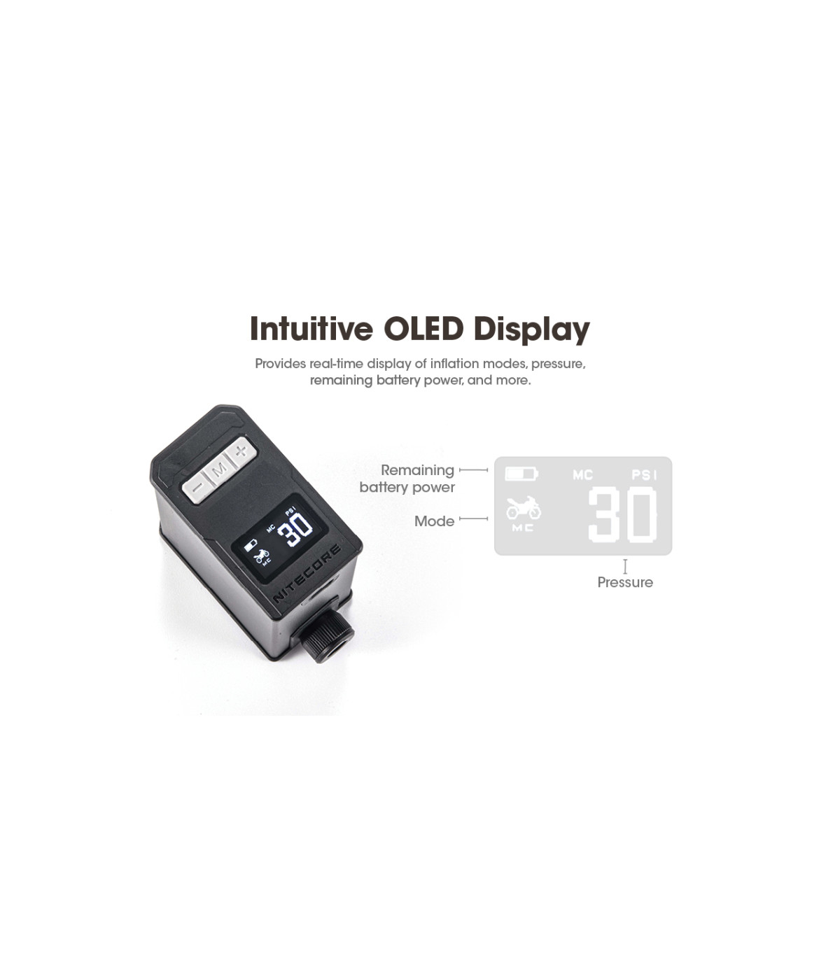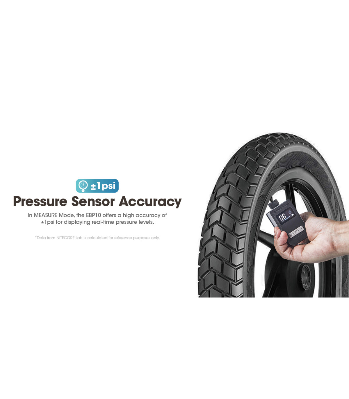 Στη λειτουργία ΜΕΤΡΗΣΗ, η τρόμπα NITECORE EBP10 προσφέρει υψηλή ακρίβεια ±1psi για την απεικόνιση των επιπέδων πίεσης σε πραγματικό χρόνο.