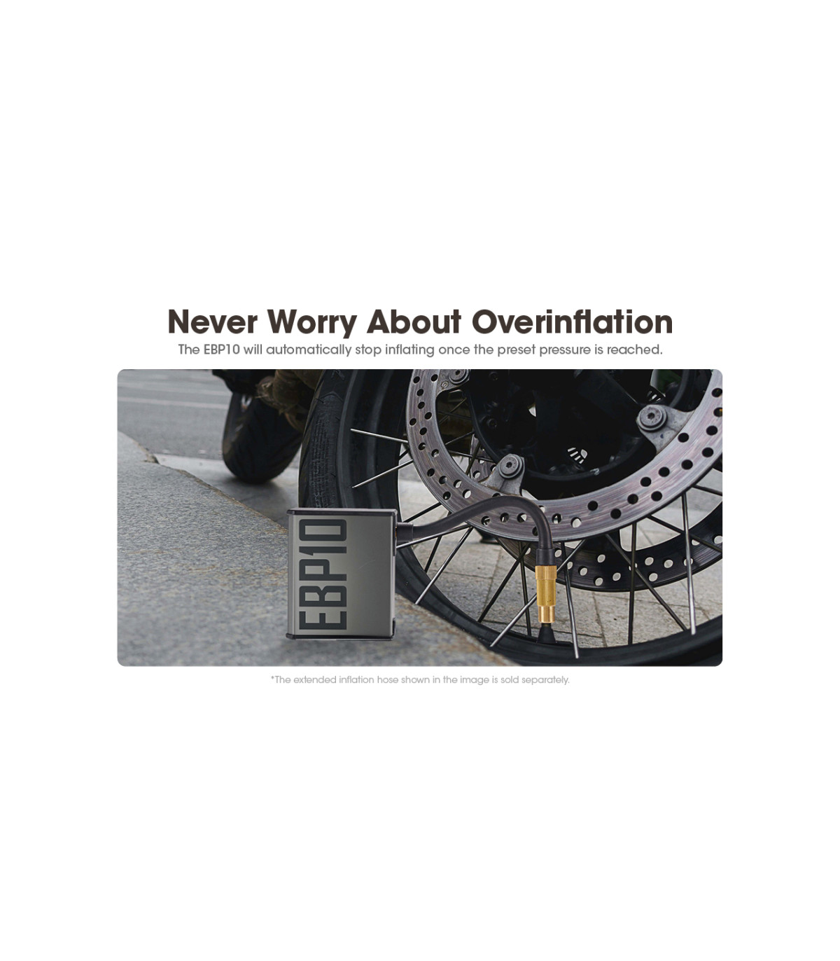 Η EBP10 θα σταματήσει αυτόματα να φουσκώνει μόλις επιτευχθεί η προκαθορισμένη πίεση.