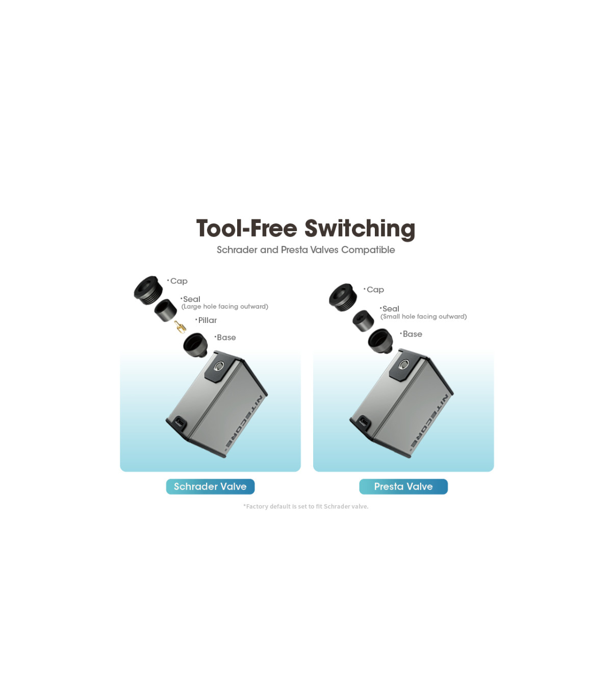 *Η εργοστασιακή προεπιλογή είναι ρυθμισμένη ώστε να ταιριάζει στη βαλβίδα Schrader.