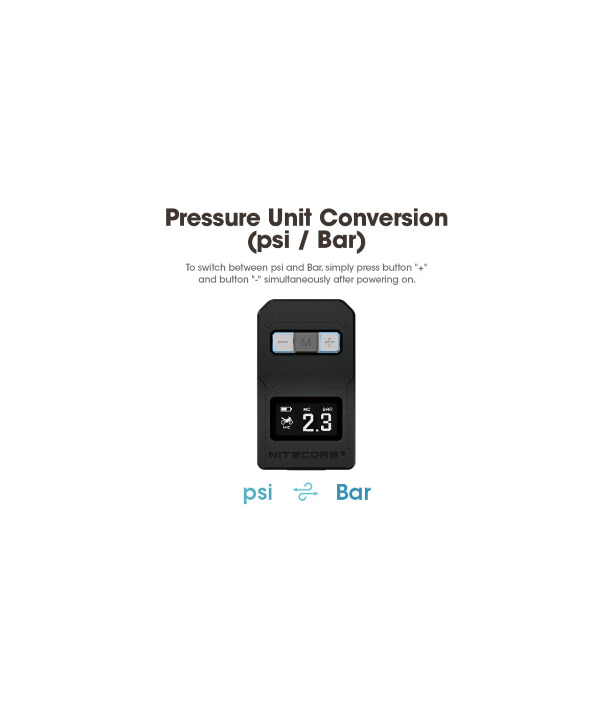 Για εναλλαγή μεταξύ psi και Bar, απλά πατήστε το κουμπί “+” και το κουμπί “-” ταυτόχρονα μετά την ενεργοποίηση.