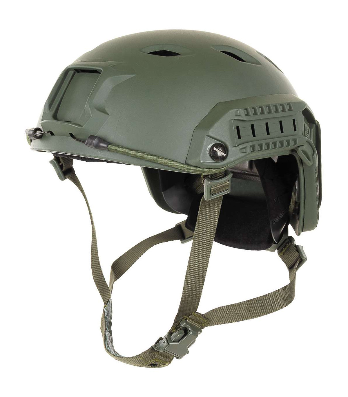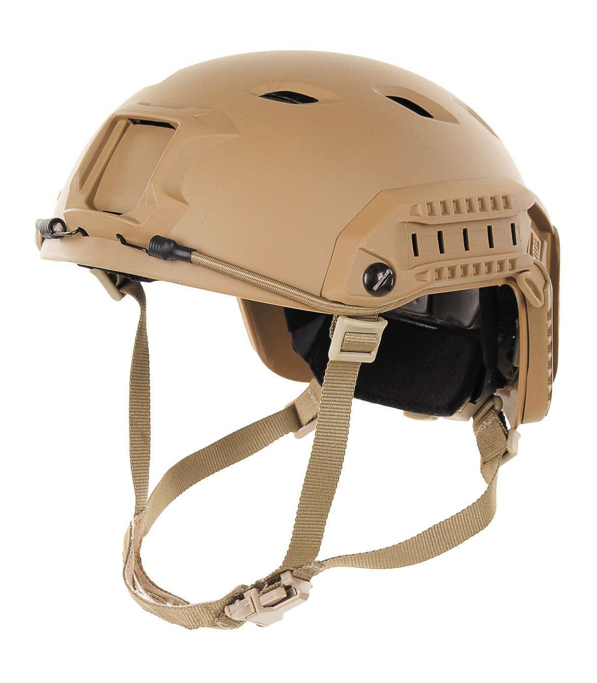 This light weight ABS-plastic helmet is suitable for daily training in the field and parachuting. Featuring the side rails and the base mount for gear adaption (scopes, night vision, tactical lights) and velcros for patching, this helmet will be your partner to your daily training routine. Fully adjustable with pads and BOA system.
