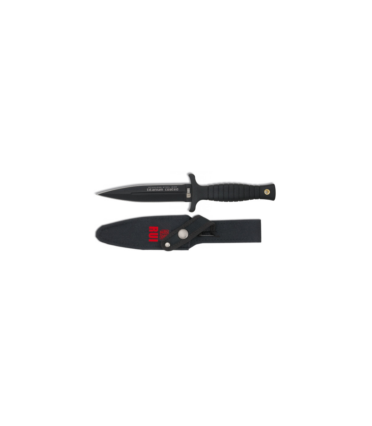 Μαχαίρι όλο μαύρο, αλακή rubber λαβή, θήκη κορντουρα,