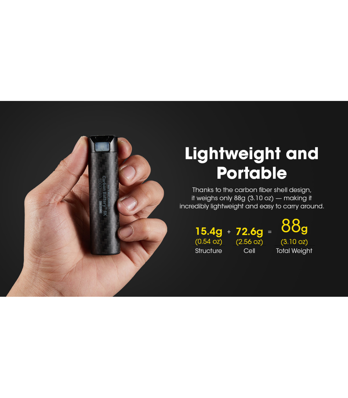 Χάρη στο σχεδιασμό του κελύφους με ανθρακονήματα , ζυγίζει μόλις 88g – εξαιρετικά ελαφριά ώστε να μεταφέρεται με ευκολία παντού.